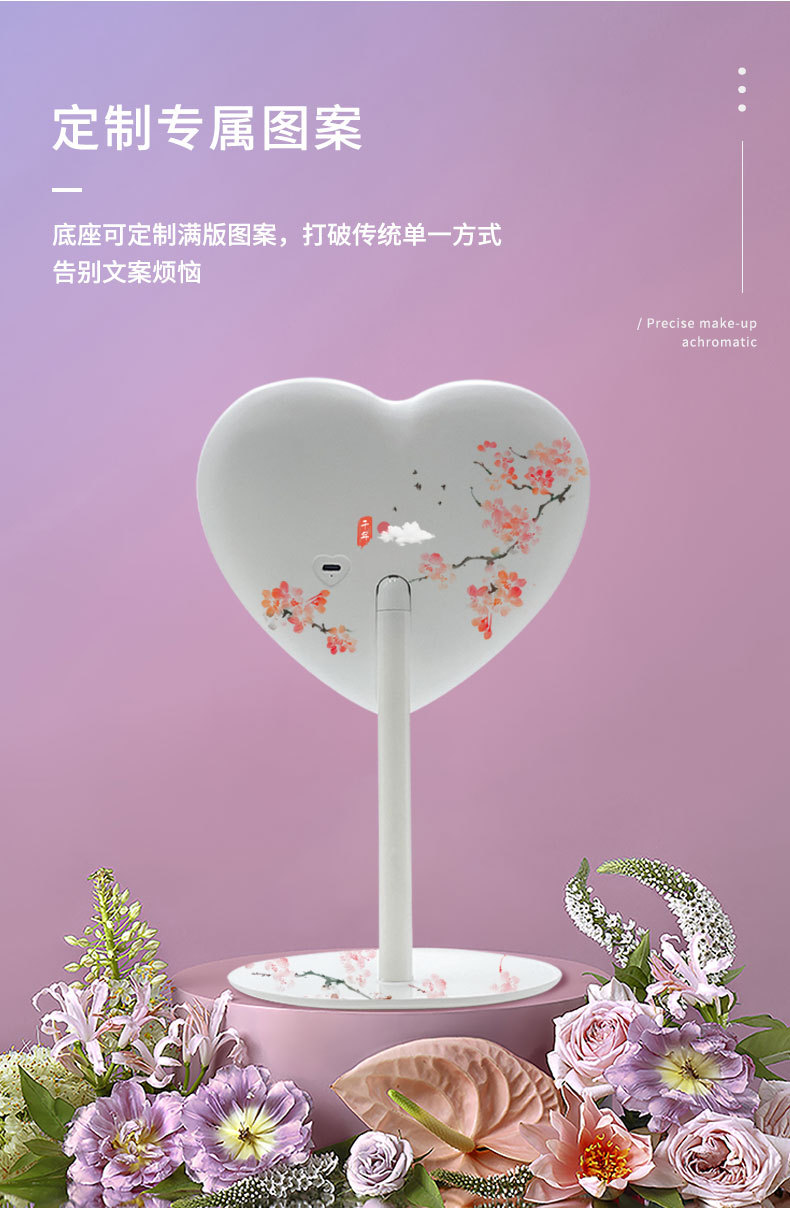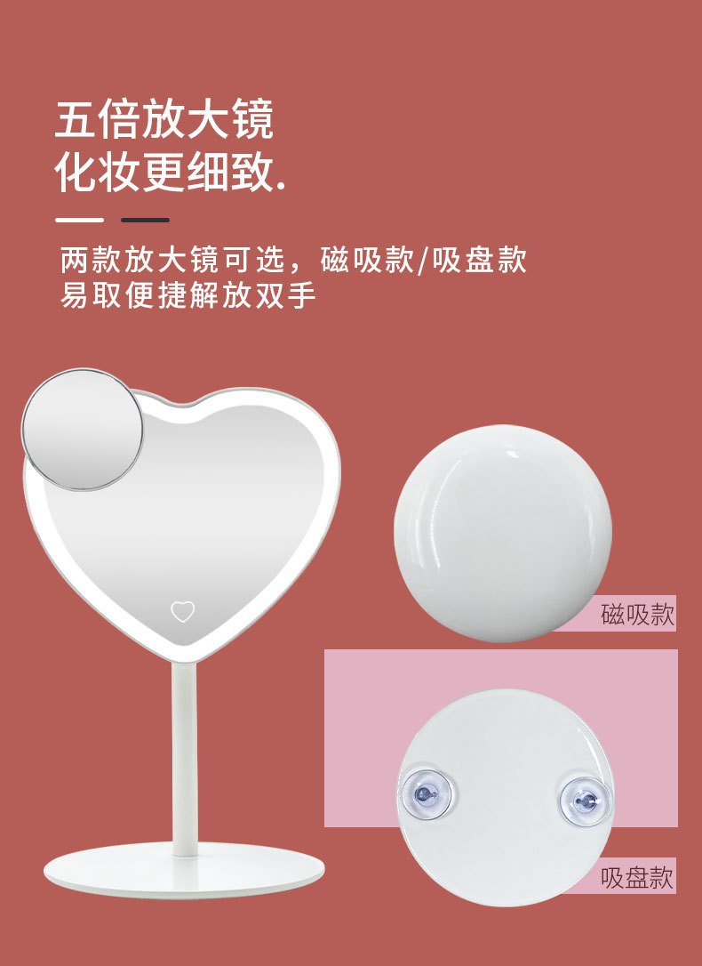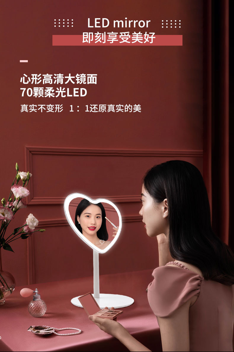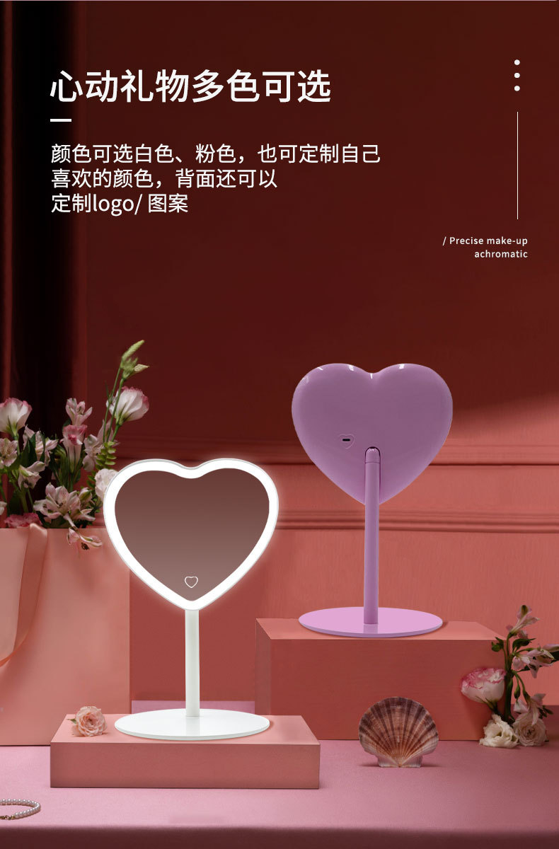 Venta directa de fábrica espejo de maquillaje led en forma de corazón espejo de tocador de escritorio con espejo de maquillaje de belleza ligero espejo de maquillaje de escritorio al por mayor transfronterizo