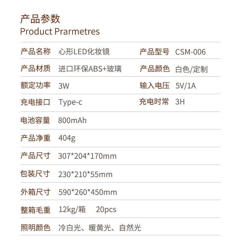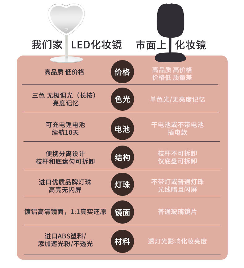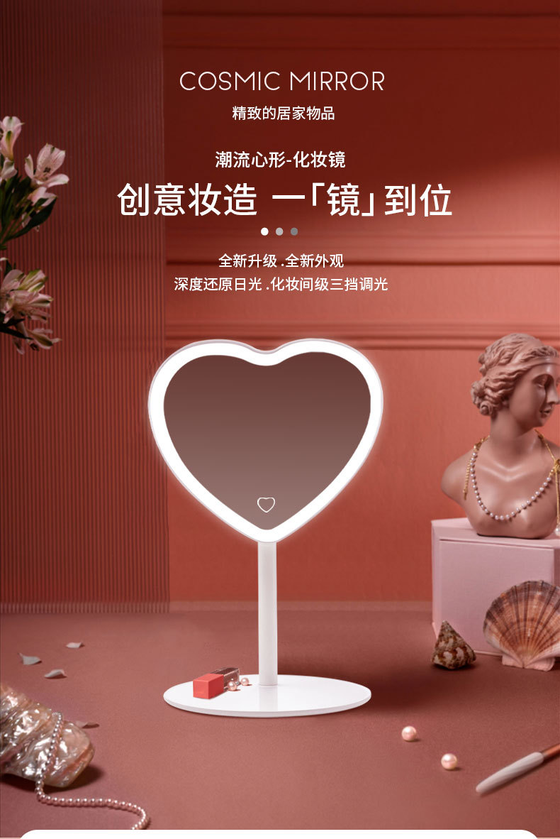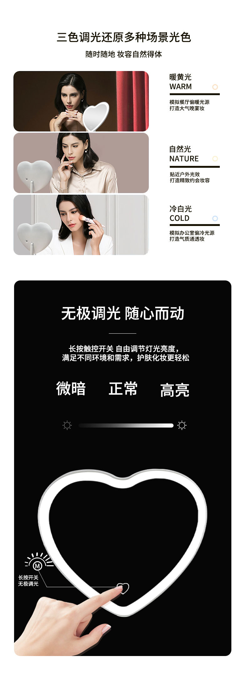 Venta directa de fábrica espejo de maquillaje led en forma de corazón espejo de tocador de escritorio con espejo de maquillaje de belleza ligero espejo de maquillaje de escritorio al por mayor transfronterizo
