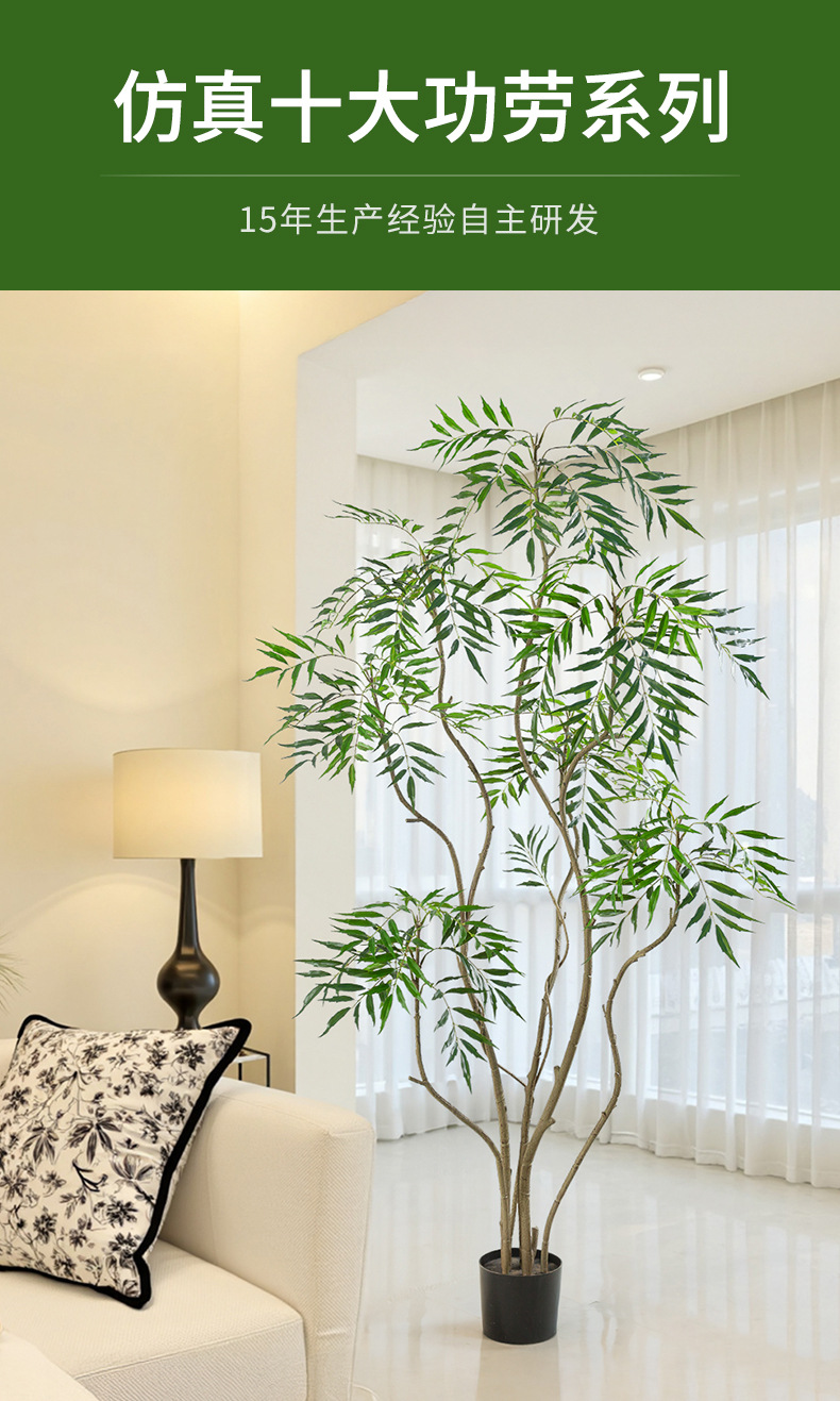 Planta verde de simulación a gran escala, planta en maceta, sala de estar interior, decoración de suelo de lujo ligero de alta gama, diez grandes contribuciones a las plantas biónicas de alta gama