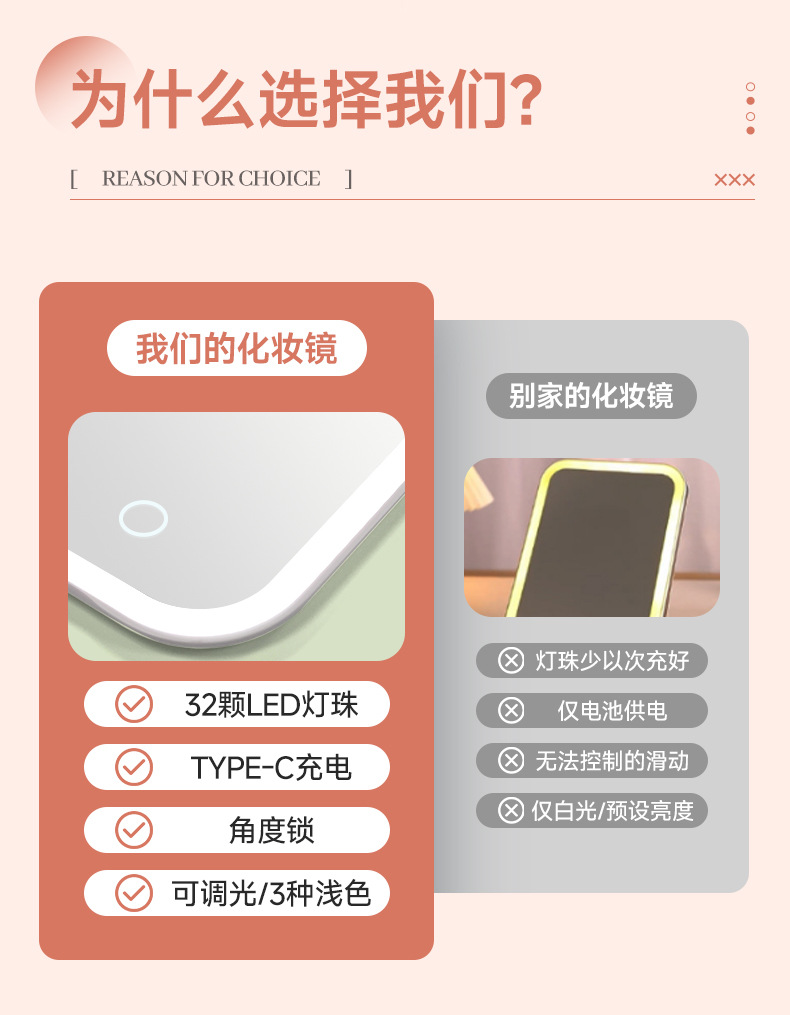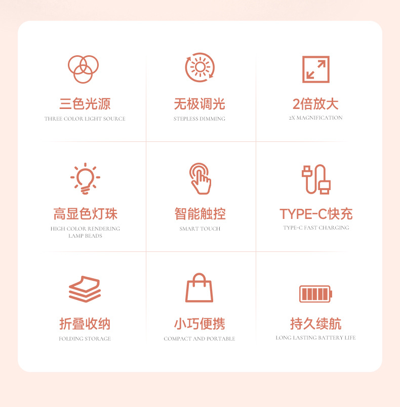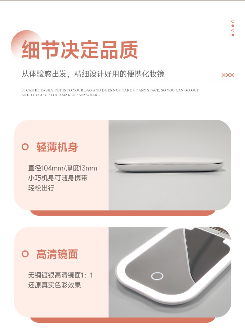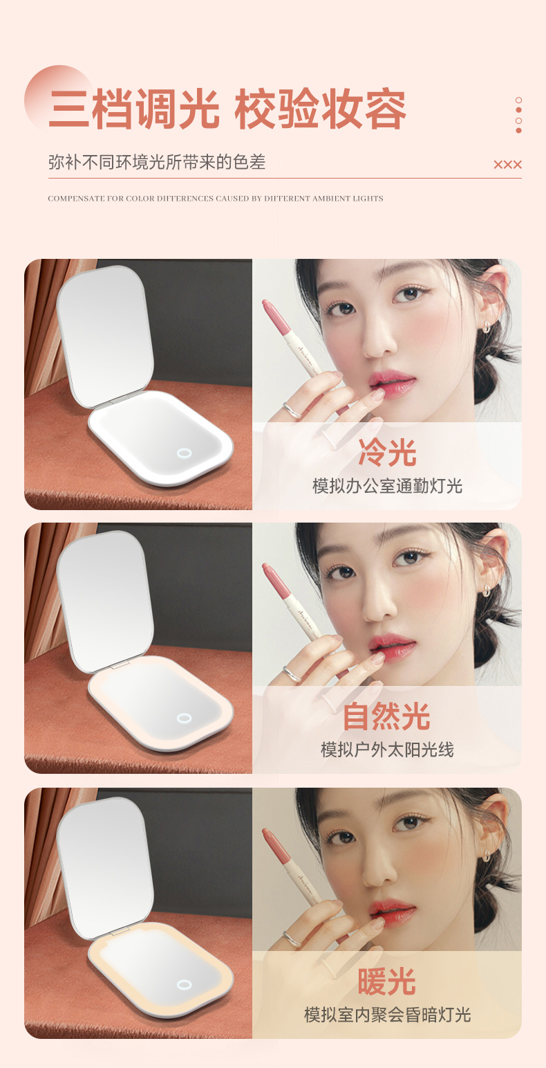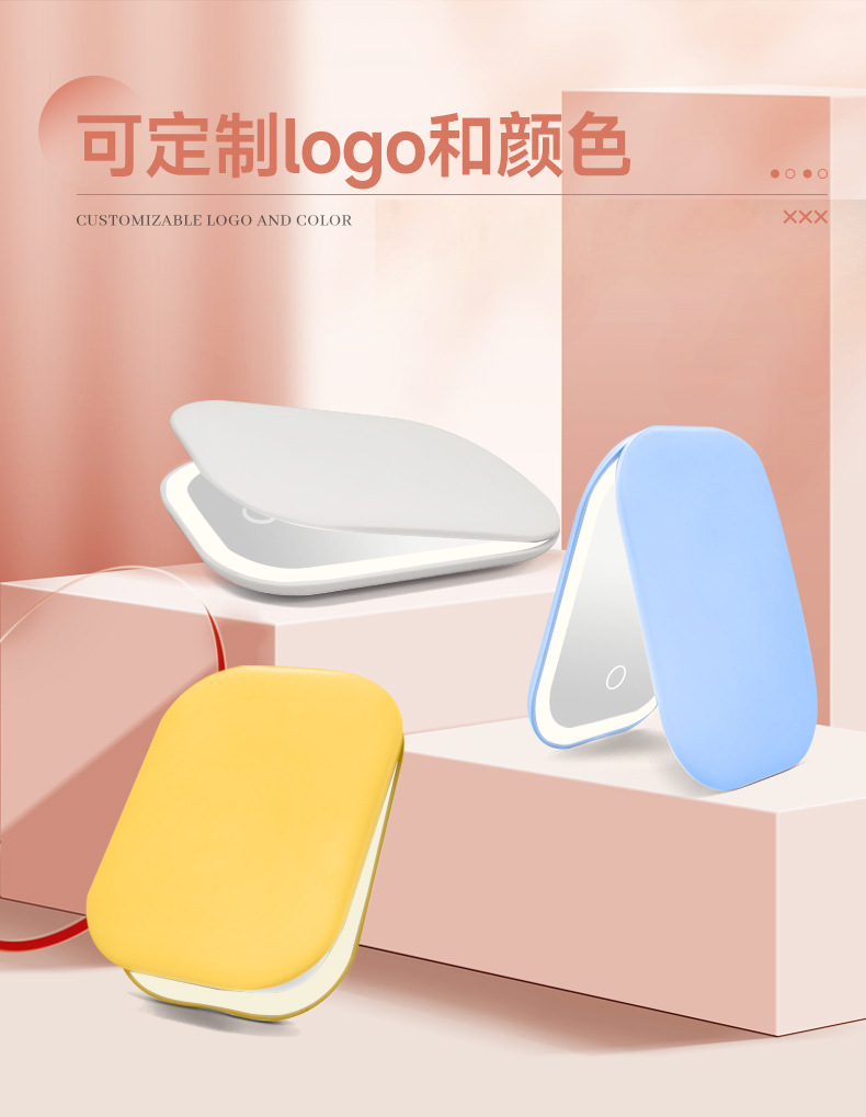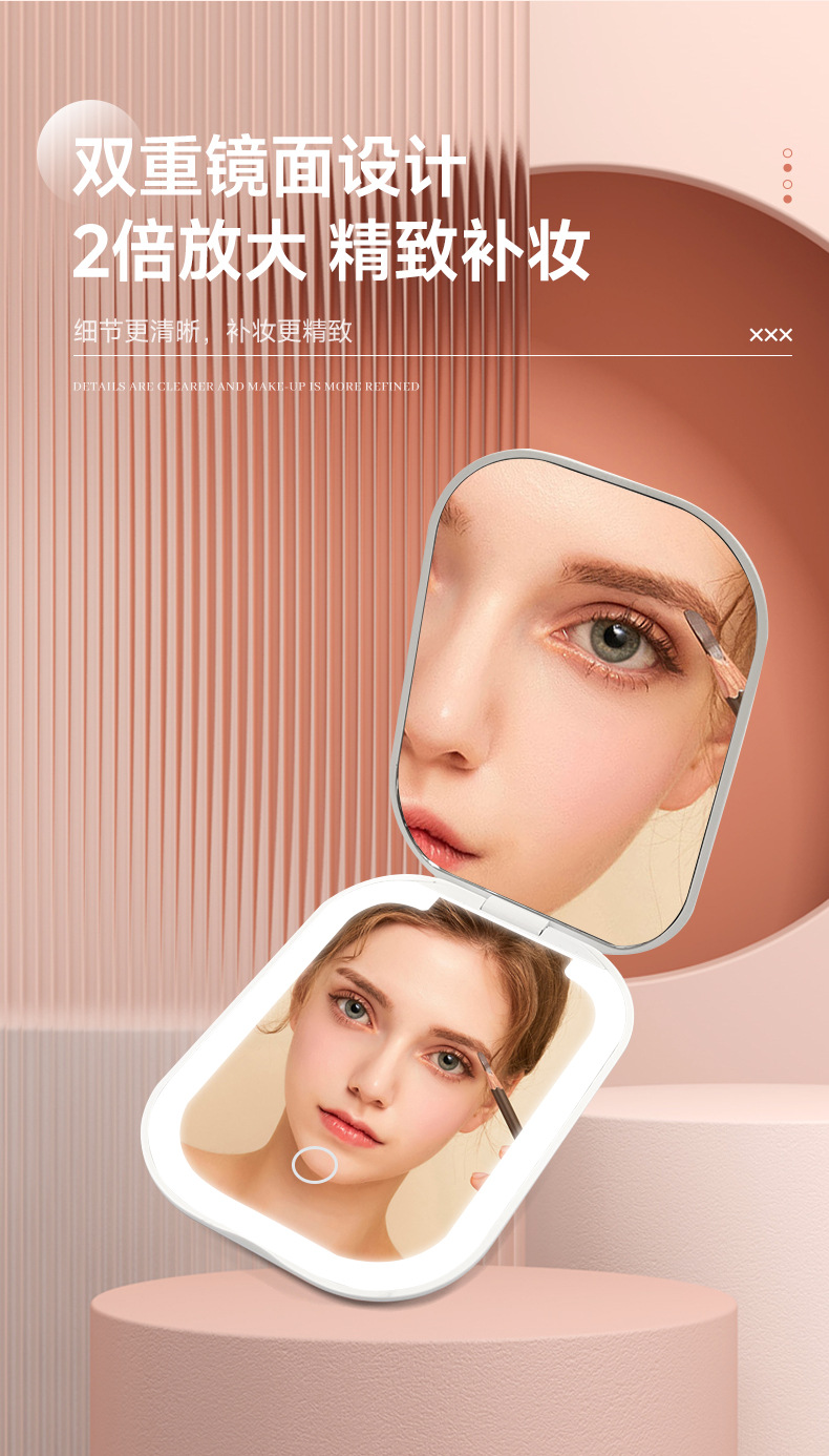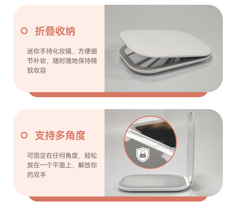 Espejo de maquillaje de belleza con luz recargable Espejo de maquillaje led Espejo pequeño Espejo de mano portátil con succión magnética plegable