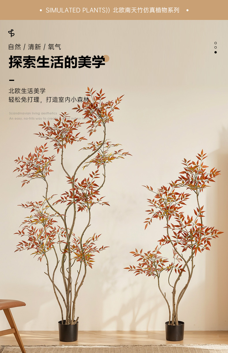 Simulación de estilo nórdico, bambú Nantian, gran planta verde de piso a techo, sensación de alto nivel, sala de estar, decoración del hogar, planta de árbol falso en maceta