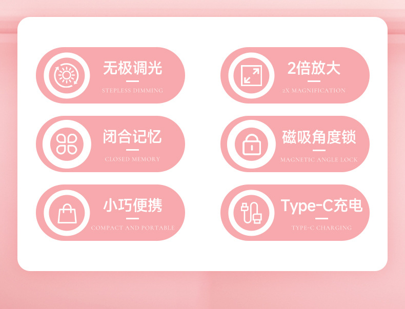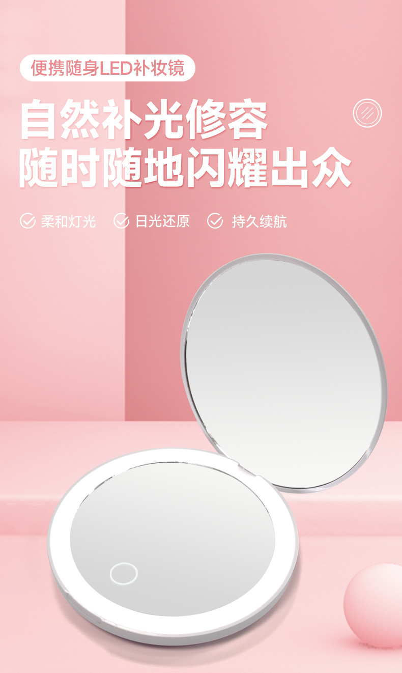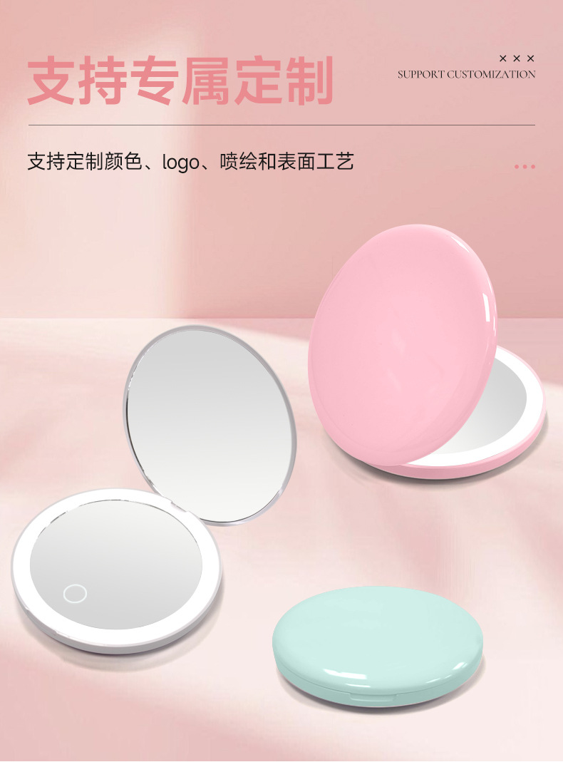 Lámpara de succión magnética, espejo portátil, espejo de maquillaje led de mano, espejo pequeño redondo plegable con luz, espejo de maquillaje personalizado de regalo