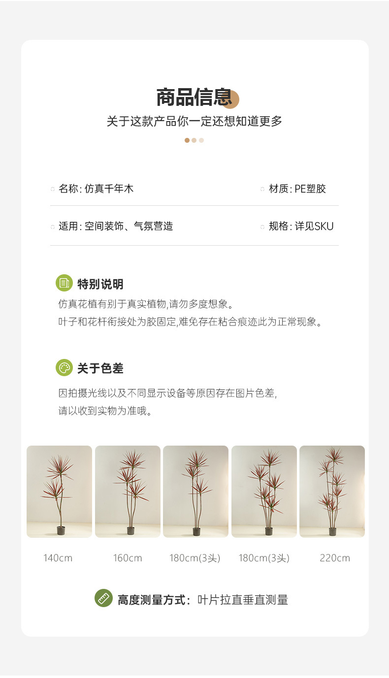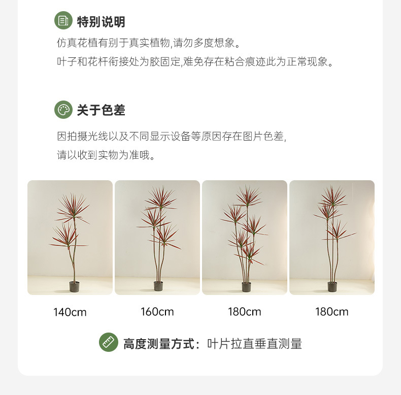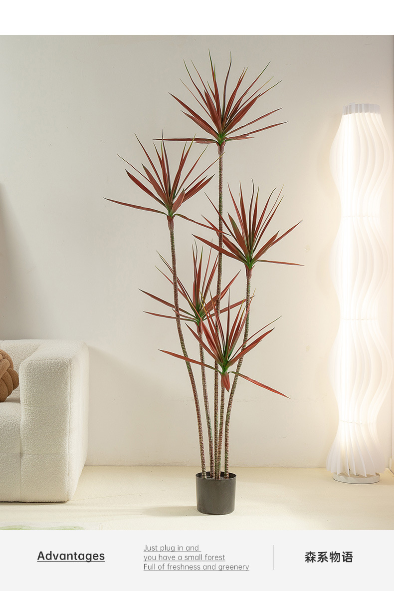 Árbol de sangre de dragón artificial viento silencioso planta verde árbol artificial decoración de sala de estar Planta artificial Agave piso olla