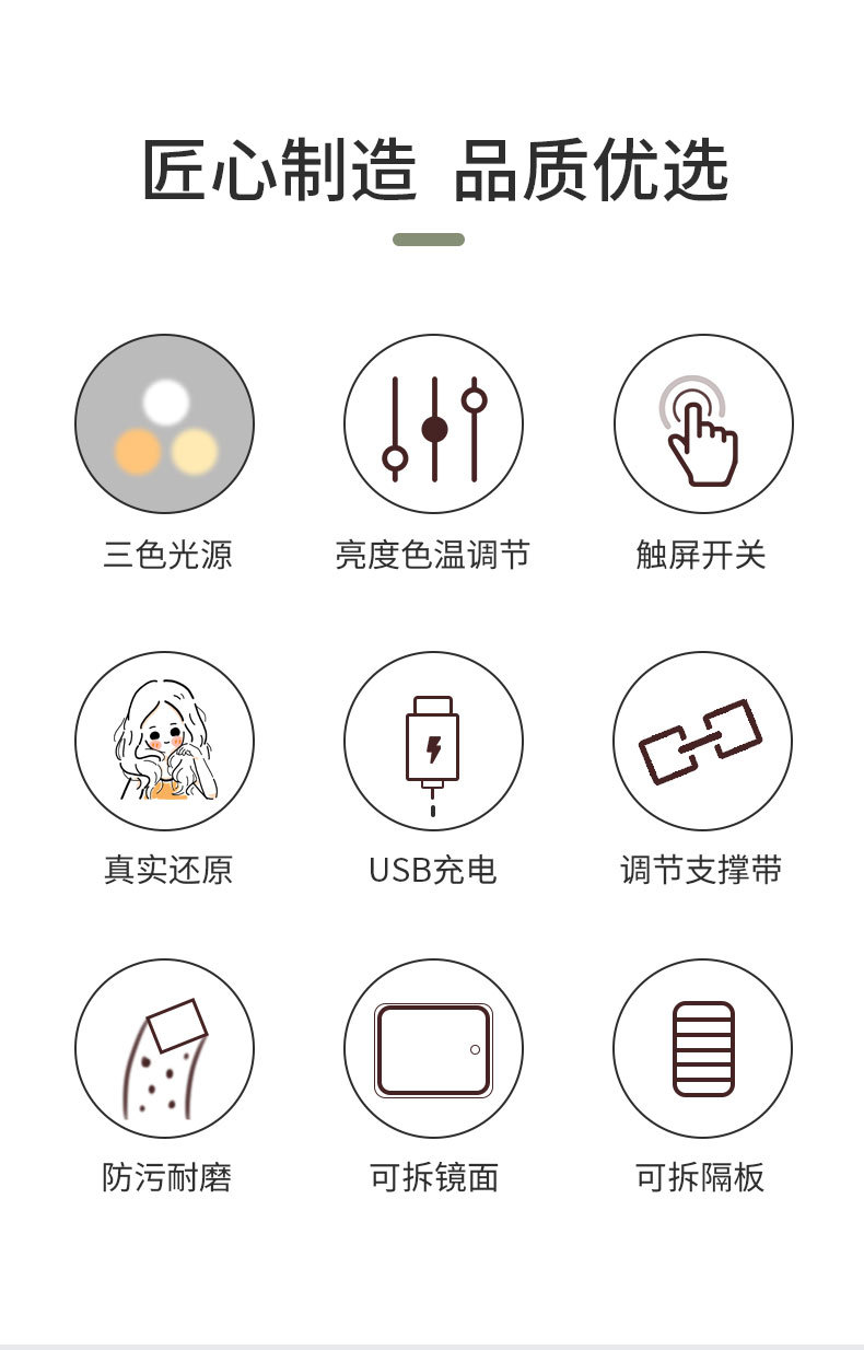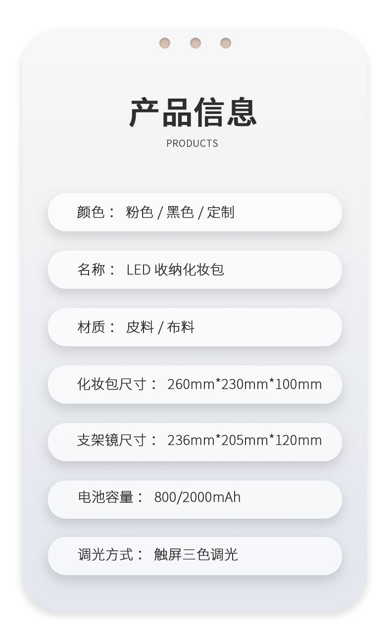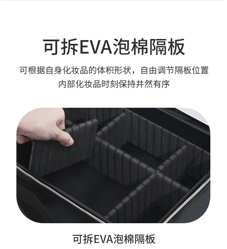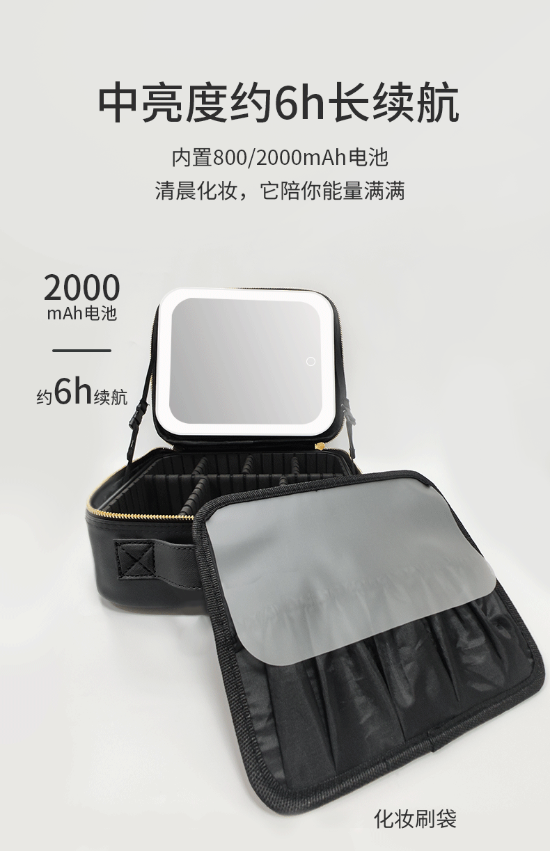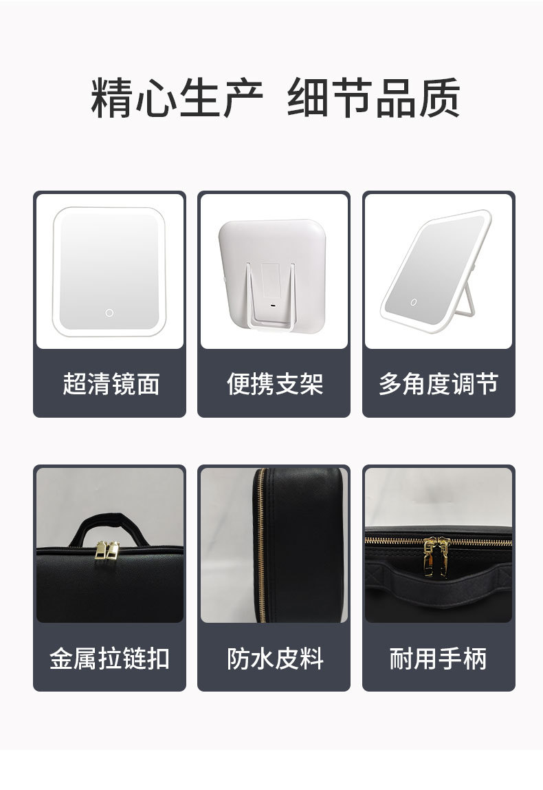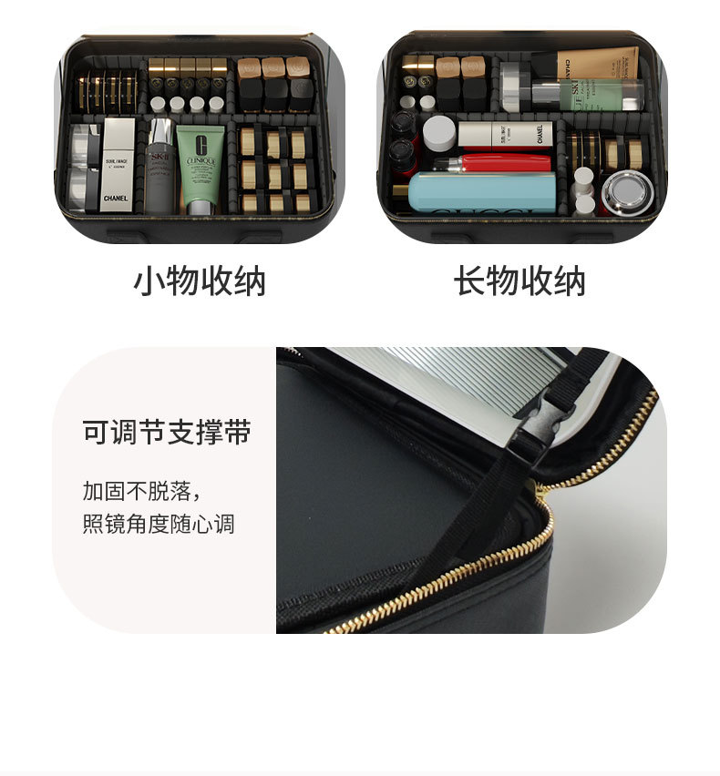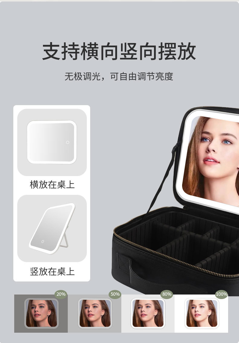 Bolsa de cosméticos con luz, espejo LED, bolsa de almacenamiento de gran capacidad, bolsa de viaje portátil, caja de cosméticos extraíble grande