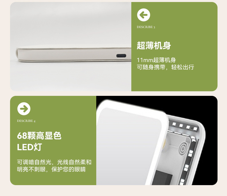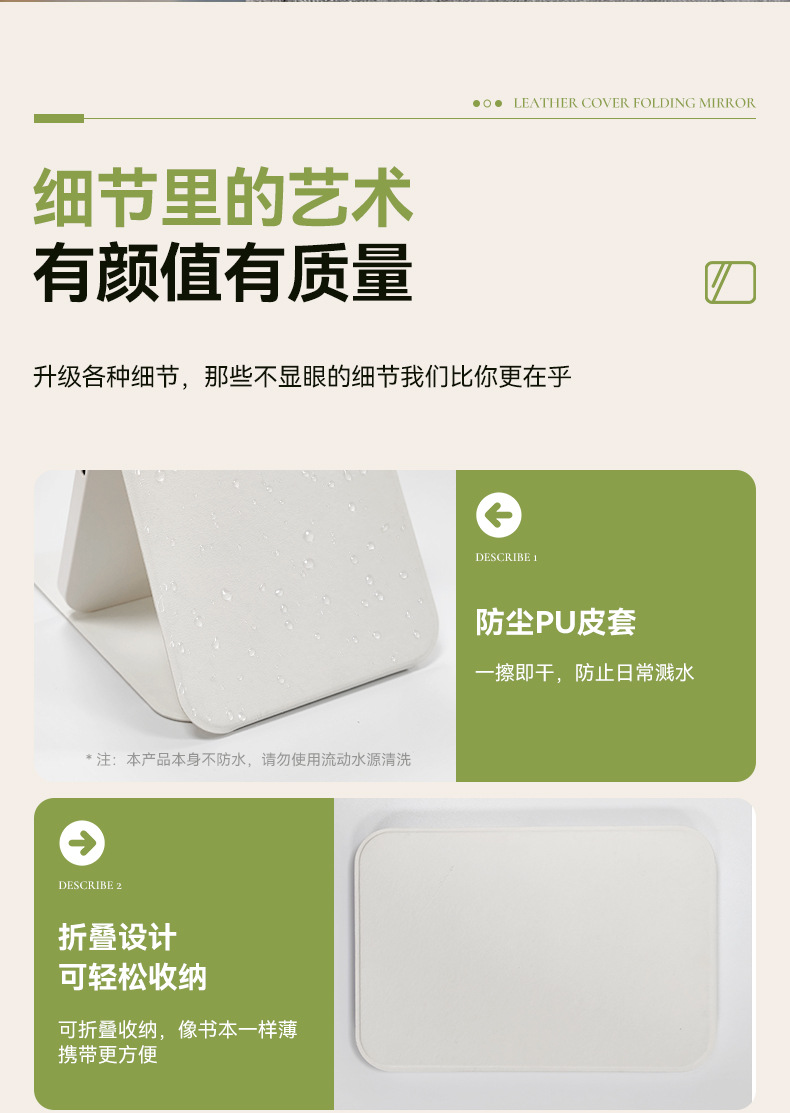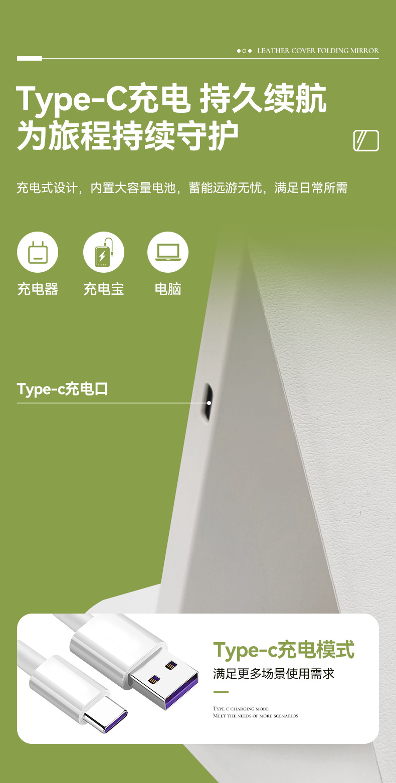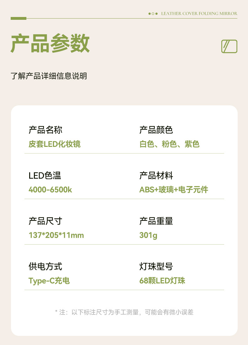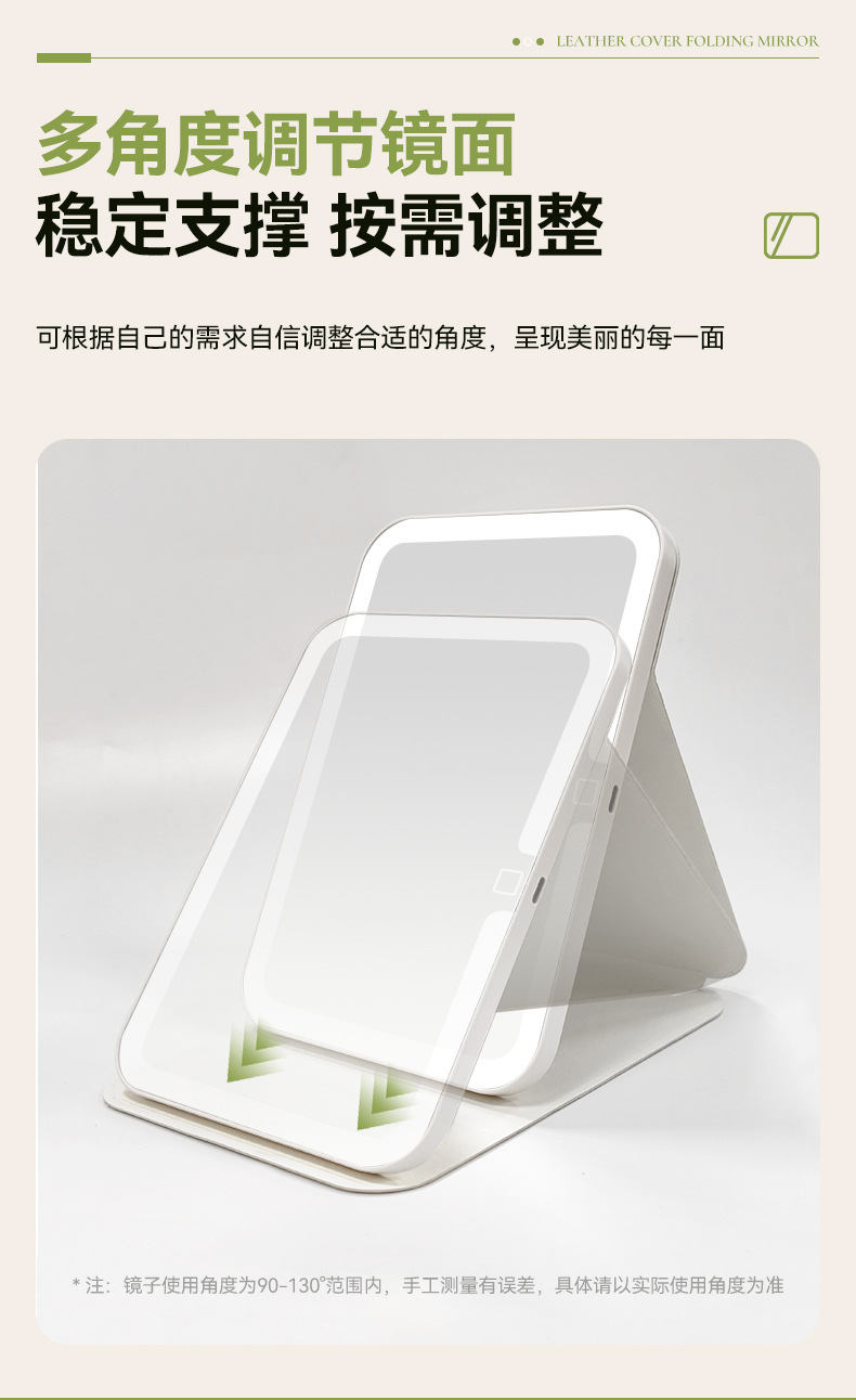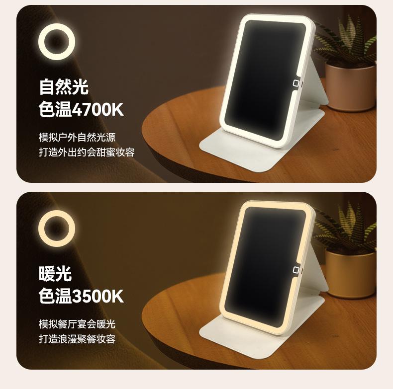 Espejo de maquillaje led de cuero PU con luz, plegable portátil, dormitorio de escritorio vertical, espejo de belleza de viaje rojo neto