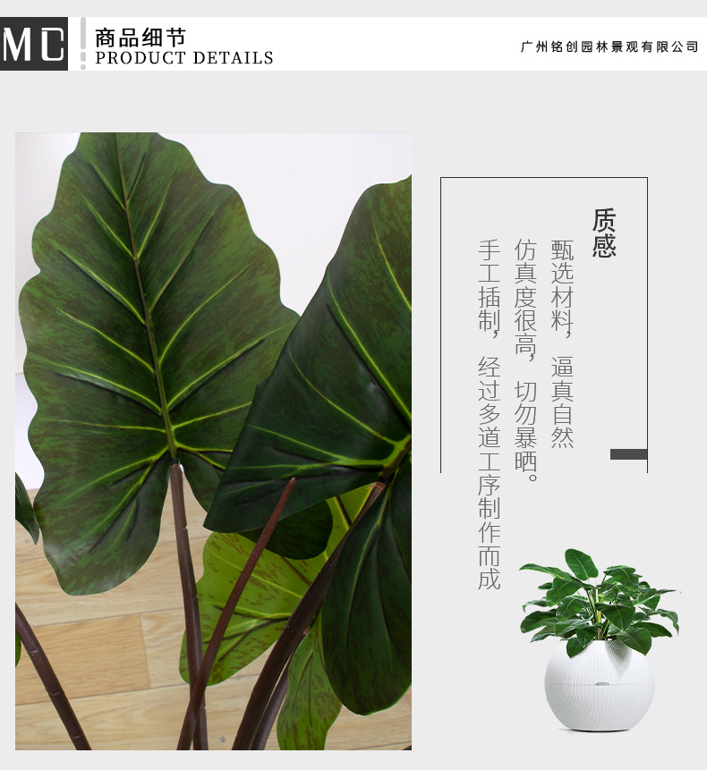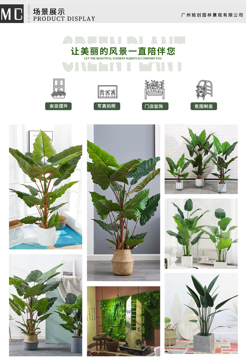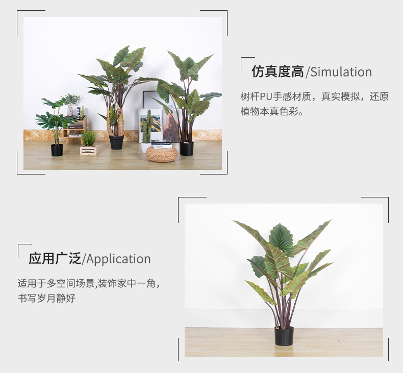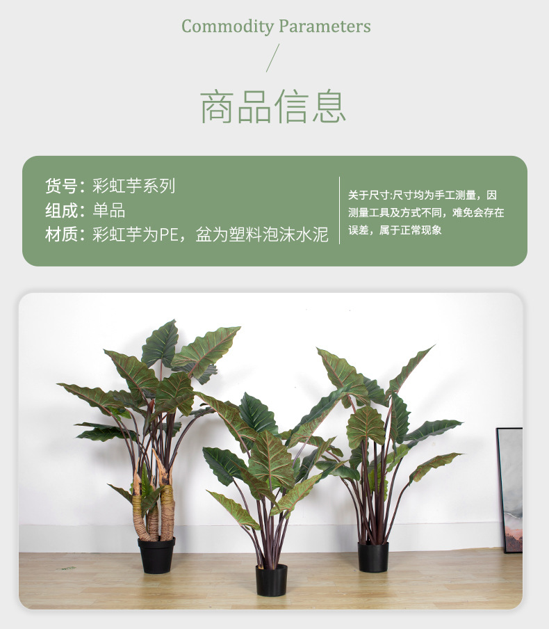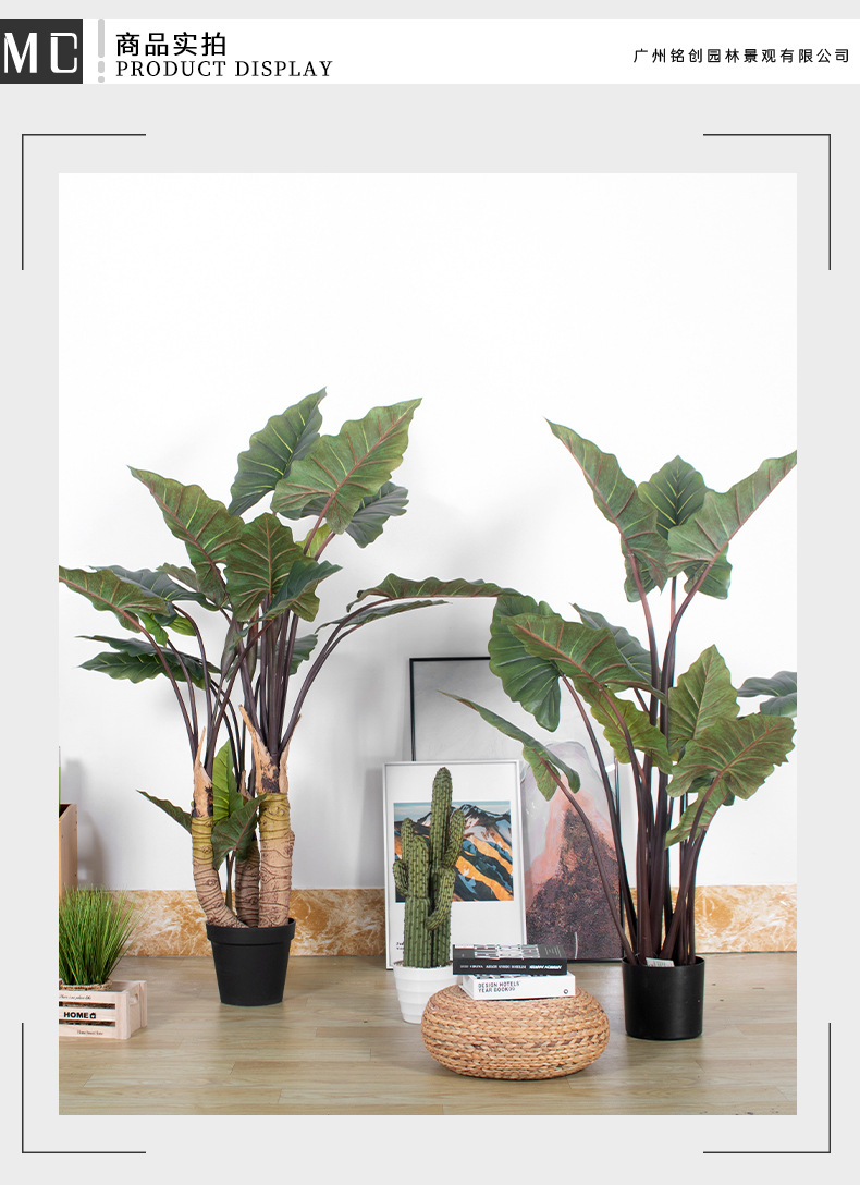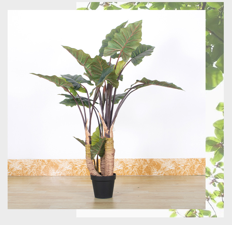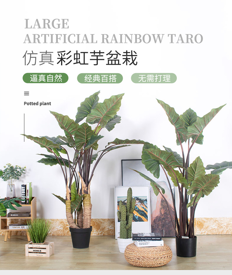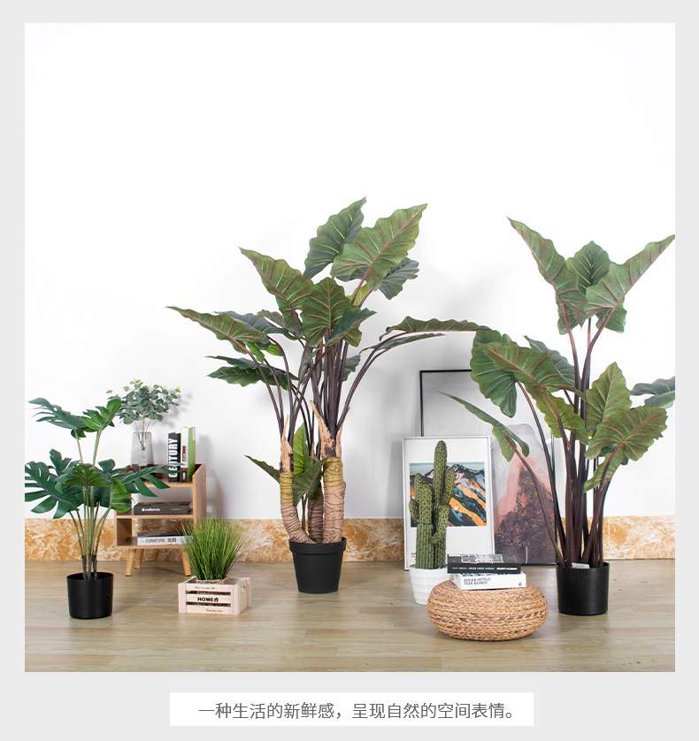 Estilo moderno decorativo planta verde bonsai al por mayor simulación Arco Iris Taro bonsai gran interior planta verde árbol artificial adornos