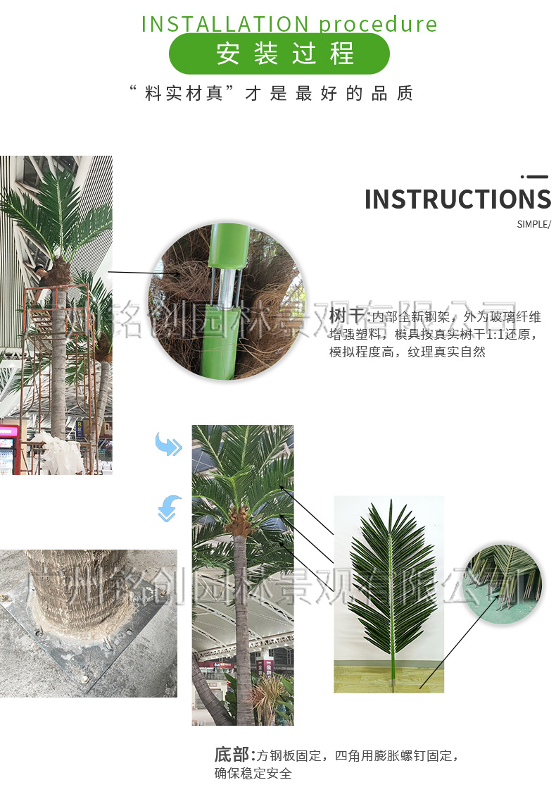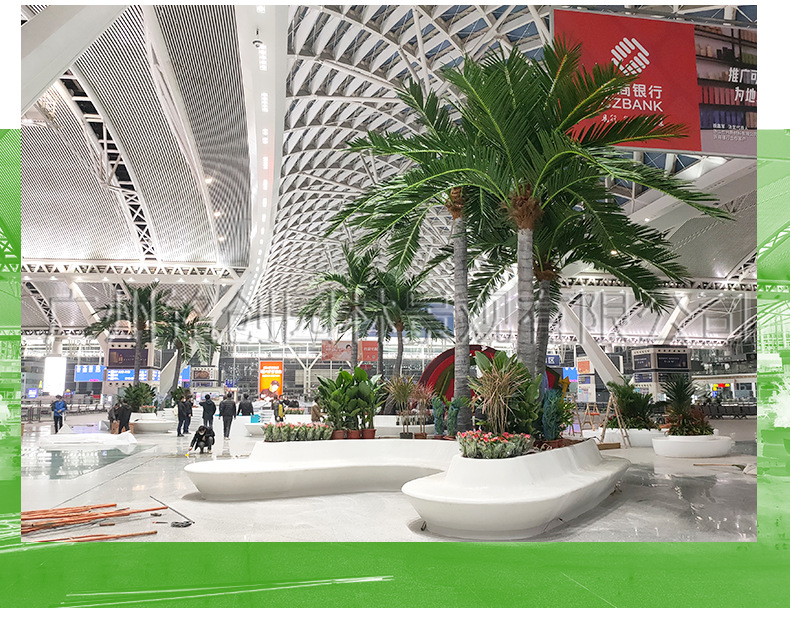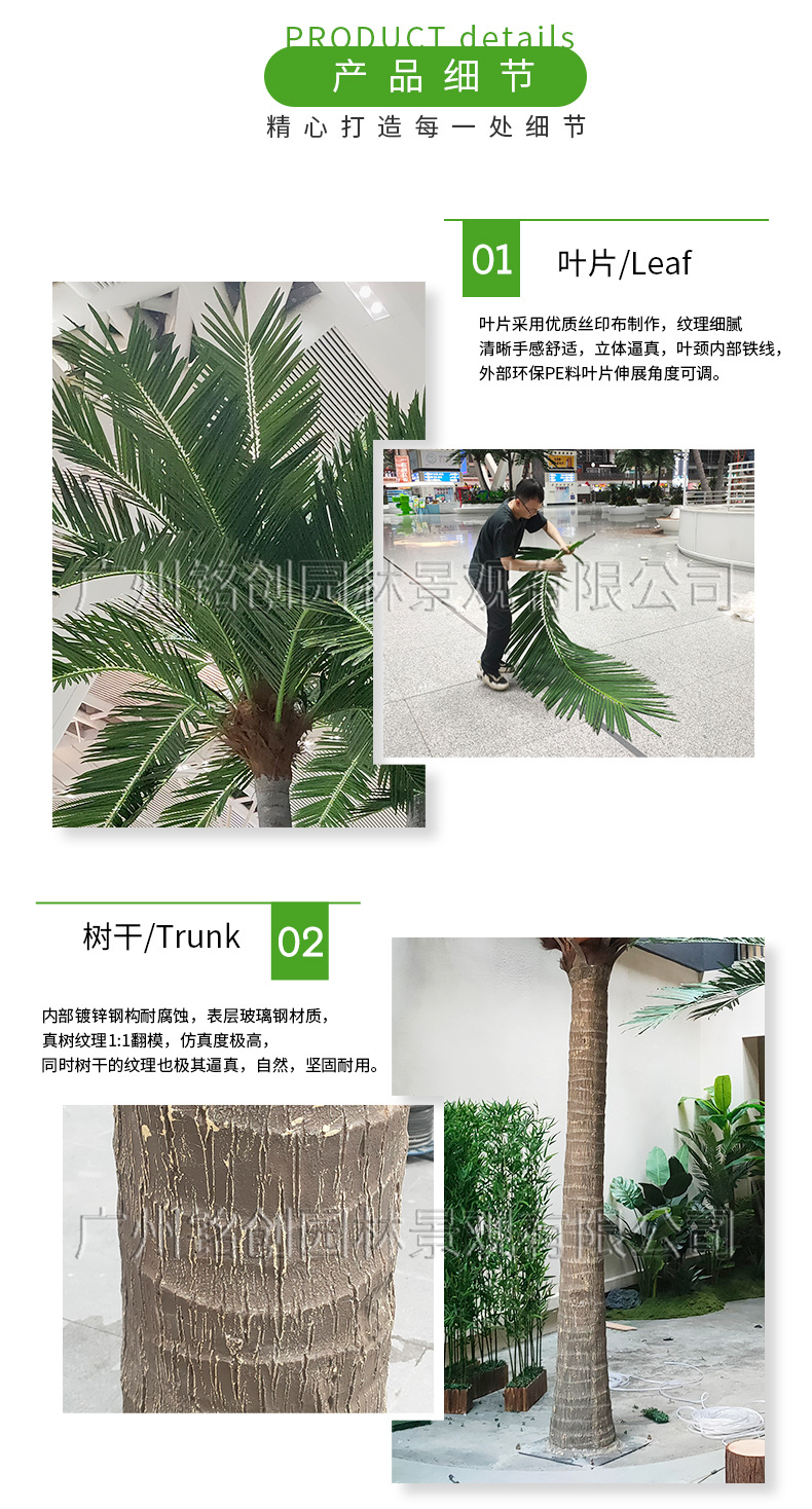 Palmera artificial de fibra de vidrio de alta gama para paisajismo de playa, árbol de coco artificial, árbol de coco falso