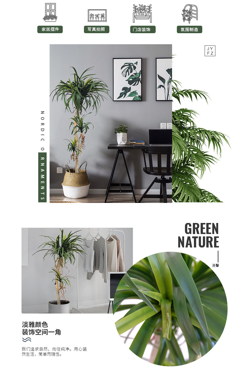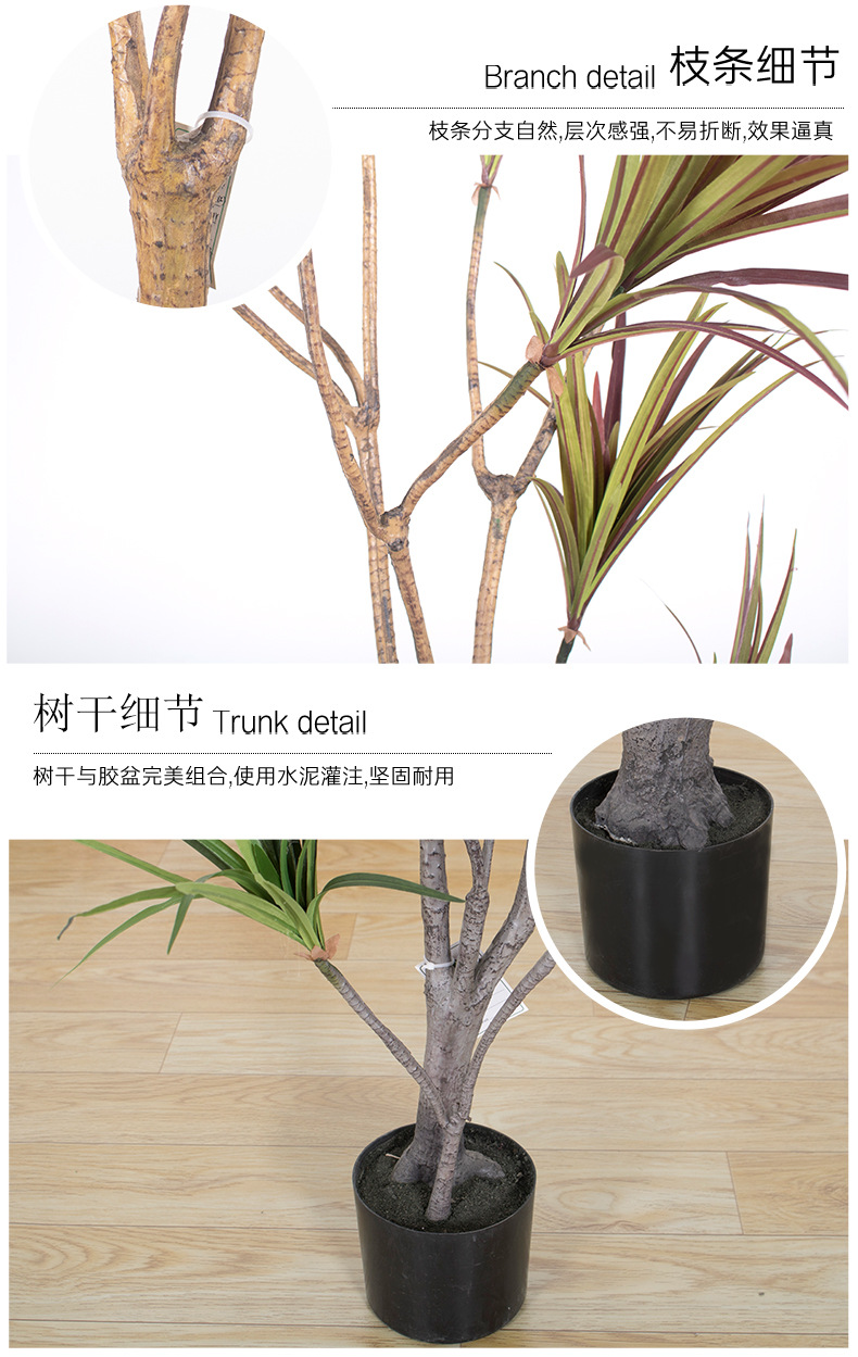 Sala de estar Planta verde Simulación de decoración Árbol de hierro de madera de mil años Simulación de estilo nórdico Planta verde Decoración suave Simulación de planta verde falsa Árbol de sangre de dragón