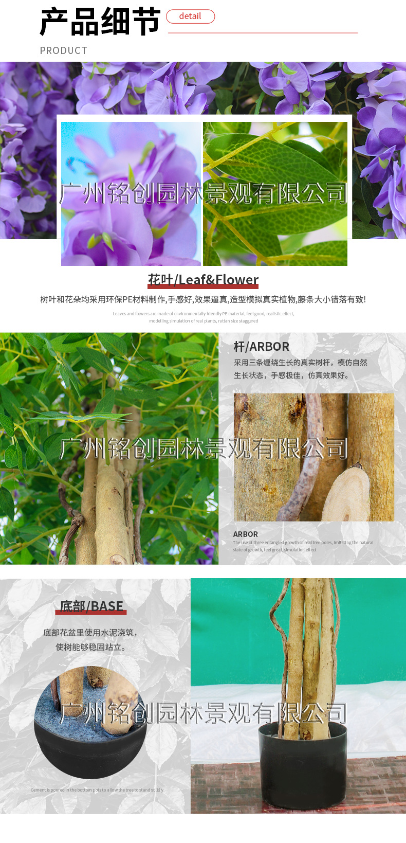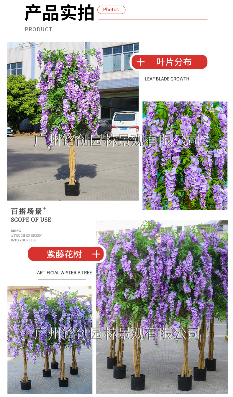 Simulación de flores colgantes de glicina, plantas en macetas, centros comerciales, flores y árboles artificiales, decoraciones de piso grande, árboles de flores de frijol
