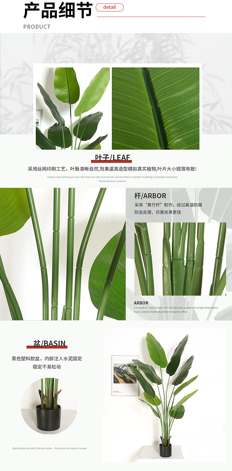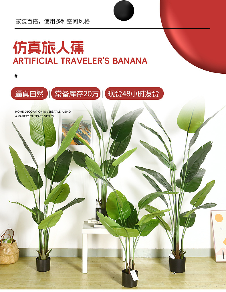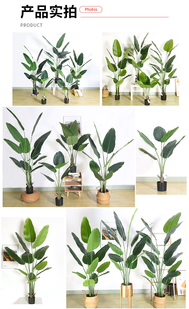 Simulación transfronteriza de hojas grandes, plantas verdes, plantas en macetas, bonsái de plátano para viajeros, sala de estar de alta gama, gran simulación, bonsái de pájaro del paraíso