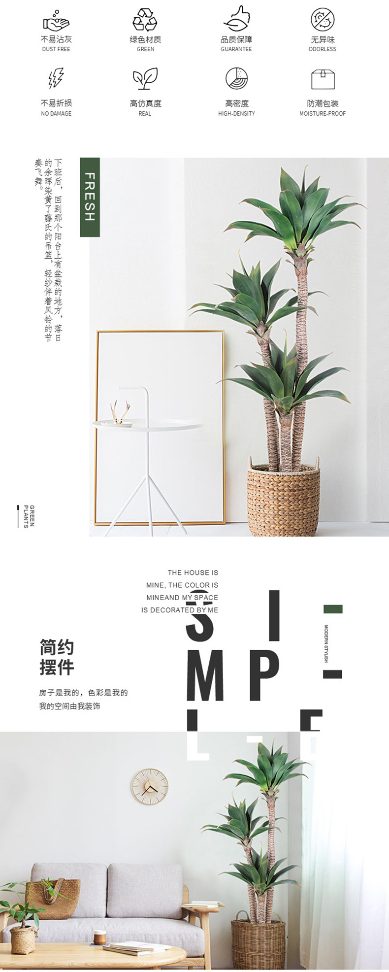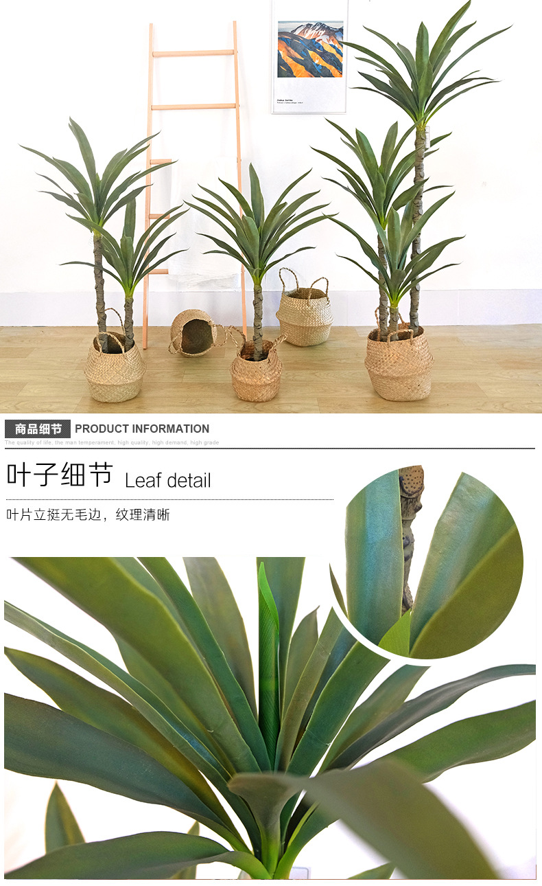 | Colores | 150cm agave,100cm yuca de una sola varilla,120cm yuca de dos varillas,160cm3 varilla yuca,172cm48 hoja todo verde agave,170cm57 hoja blanco borde espinoso agave |