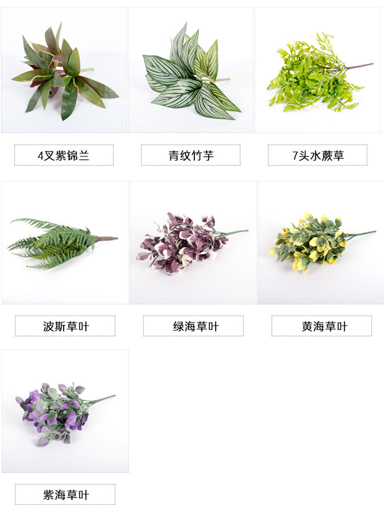| Colores | 4 brocado púrpura tenedor,6 enredaderas,Madera que cambia de color de 6 hojas,Red blanca de 7 horquillas,Begonia verde de 7 tenedores,7 cabezas de agua helecho,7 cabezas de perilla,7 puntos de eneldo verde,7 puntas de eneldo verde,Taro de bambú pavo real,Hojas de semillas de melón verde,Semilla de melón blanco,Osmanthus con borde blanco,Hojas de Jiulixiang,Lavanda,Hojas de semillas de melón,Osmanthus,Hierba de eucalipto,Hojas de hierba de cebolla amarilla,Hojas de hierba de cebolla blanca,Hojas de hierba de cebolla verde gris violeta,Hojas de hierba persa,Taro de bambú azul,Hierba de borde blanco,Hojas de hierba de mar púrpura,Hojas de hierba del mar amarillo,Hojas de hierba de mar púrpura de taro |
