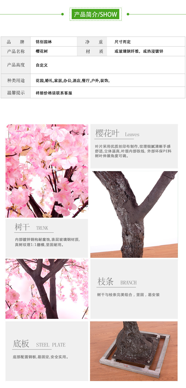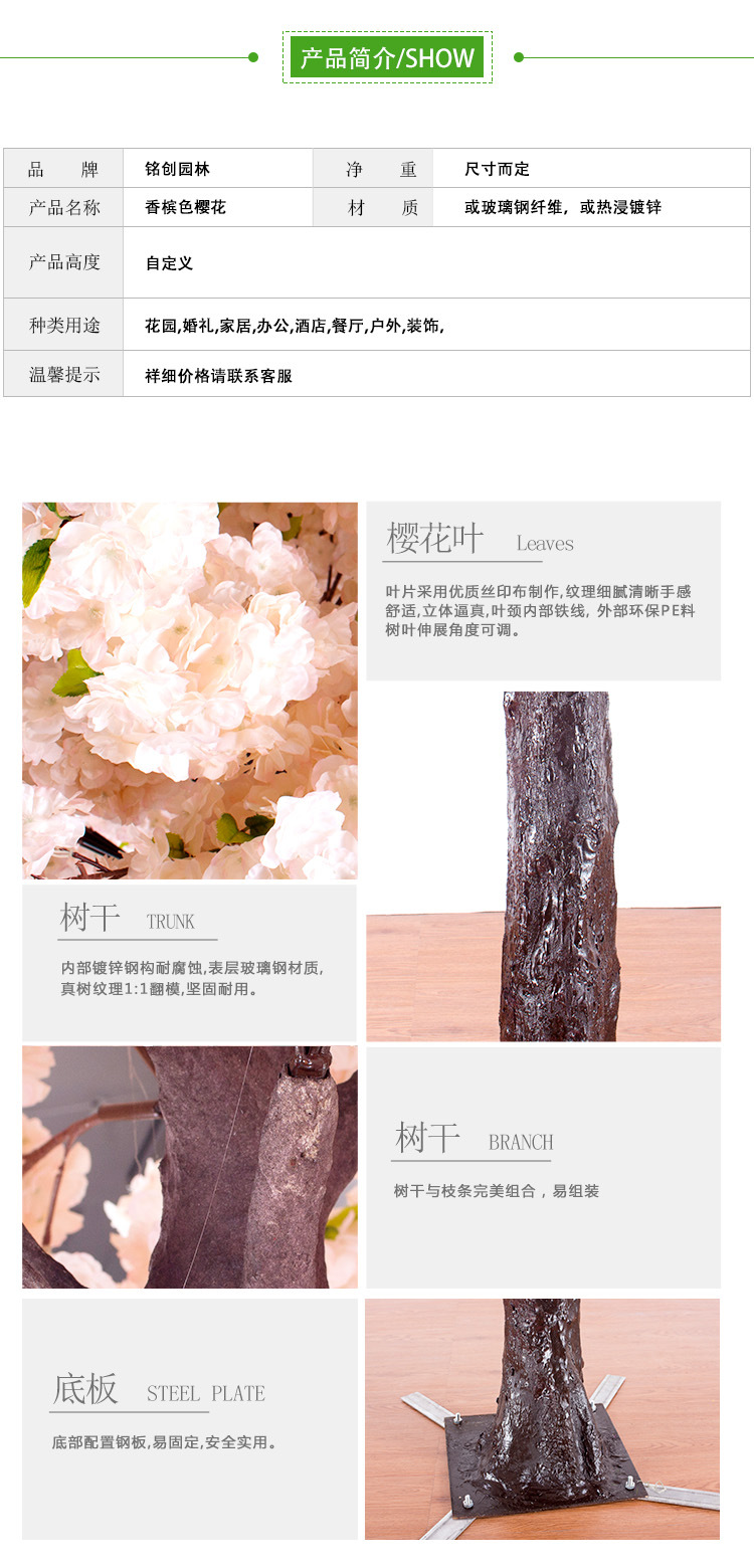 | color | Cerezo en flor de 1,4 metros.,Flores de cerezo colgantes pesadas de 2,1 metros,Flores de cerezo champán de 2,6 metros.,Cerezo de 3,5 m |