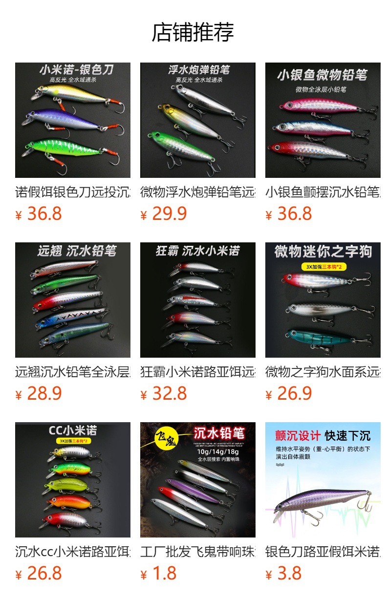 ![Luya cebo nuevo producto [8 colores onda mentira] cebo superficie de agua serie cebo falso cebo de imitación 6CM/10,4G cebo duro de plástico](https://cbu01.alicdn.com/img/ibank/O1CN01hlyvOS1Bs2v07DTU9_!!0-0-cib.jpg?x-oss-process=image/resize,m_pad,h_300,w_300,limit_0)