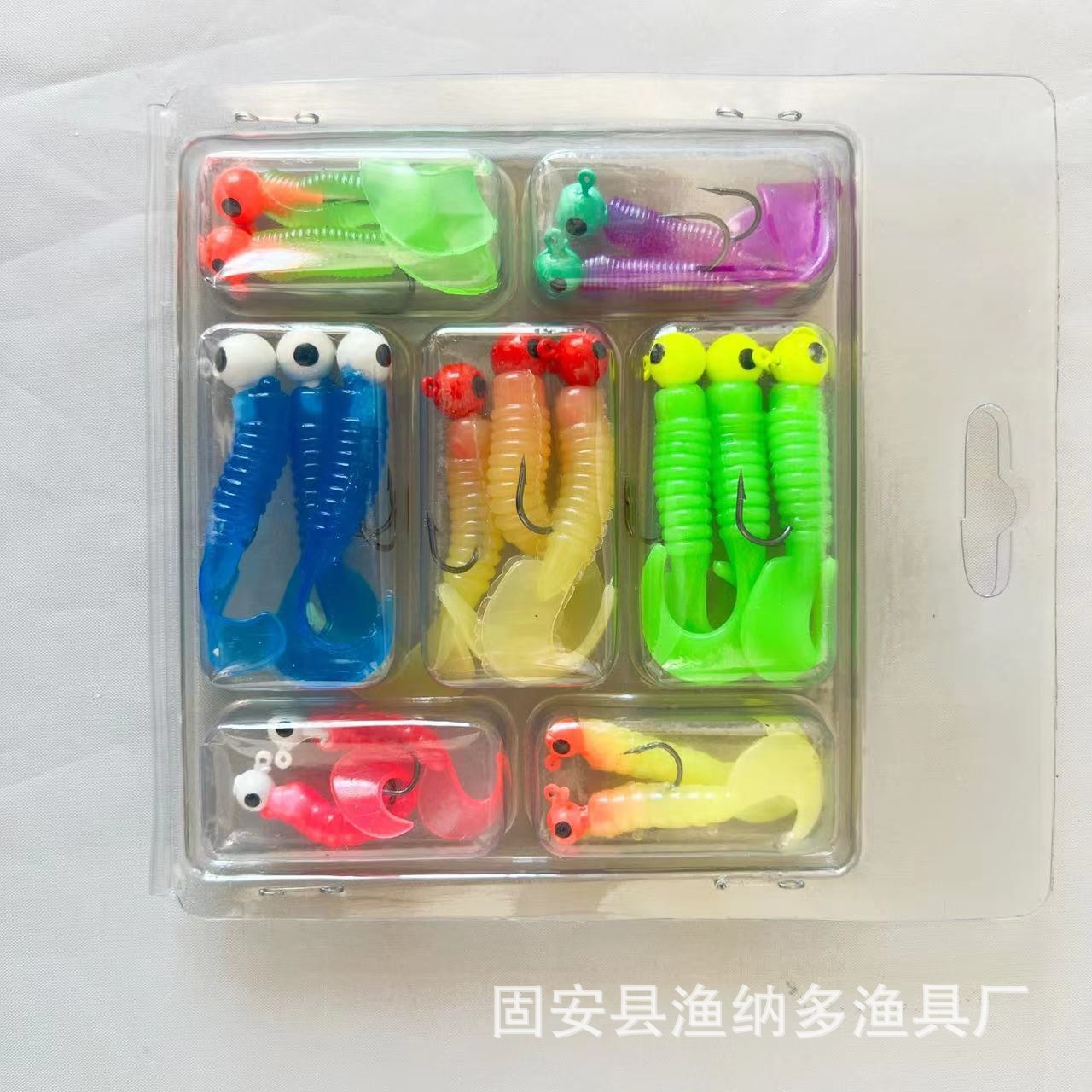 Luya cebo falso rodando cola de cebo suave rodando cola gusanos cabeza de plomo gancho de cebo combinación gusano suave Luya cebo traje de pescado mandarín bajo boca
