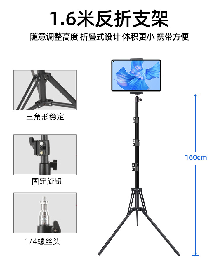 Estilo explosivo transfronterizo Soporte de tableta de 1,6 metros Trípode de piso para teléfono móvil Tablet Fotografía universal Video en vivo Portátil