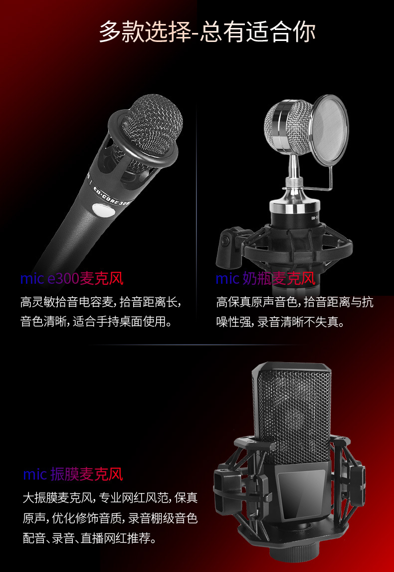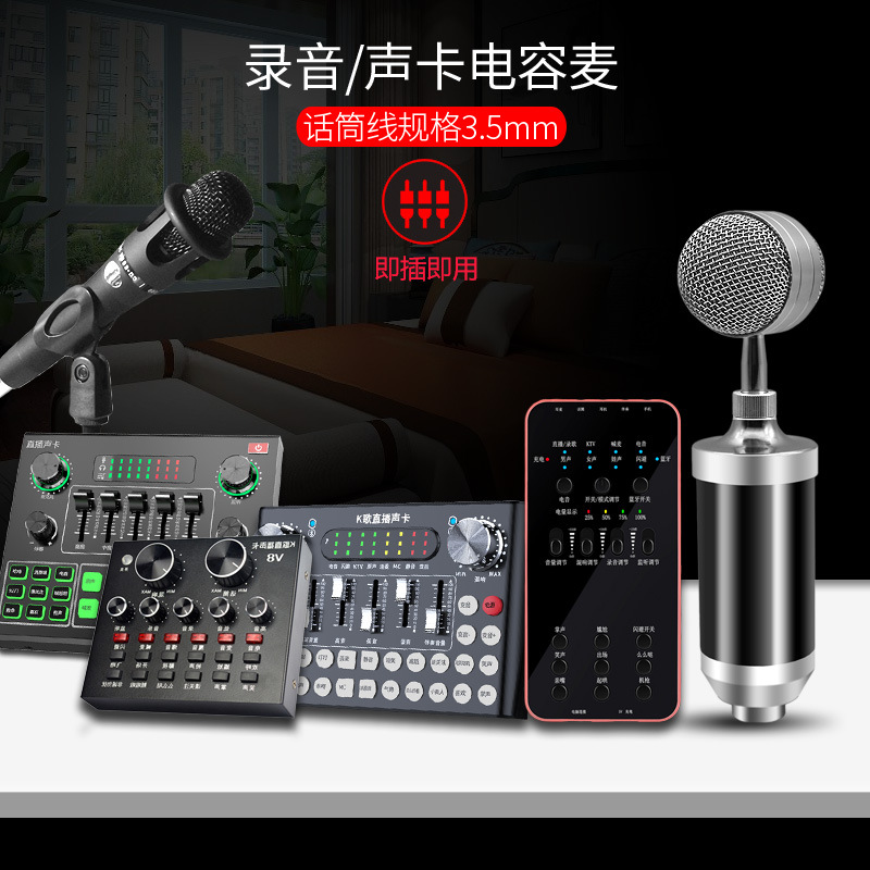 Biberón Micrófono Transmisión en vivo Condensador ancla dedicado Mai Teléfono móvil Computadora de escritorio K grabación de canciones Micrófono Tarjeta de sonido Hogar