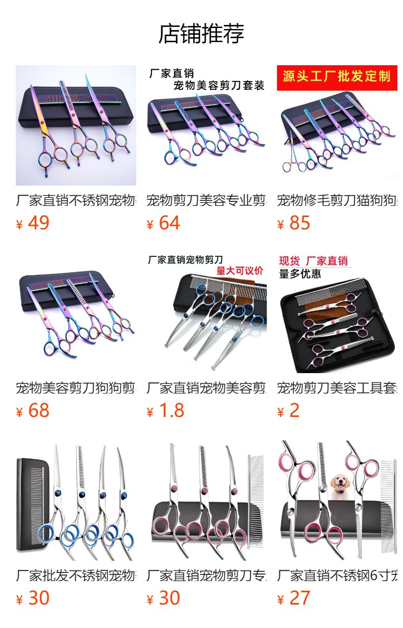 Acero inoxidable directo de fábrica Tijeras para mascotas de 7 pulgadas Tijeras de belleza para perros Tijeras de pelo de peluche