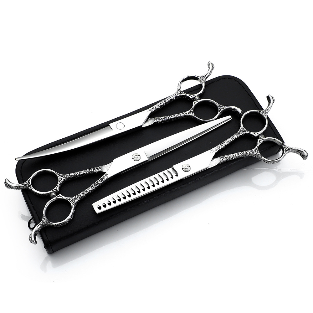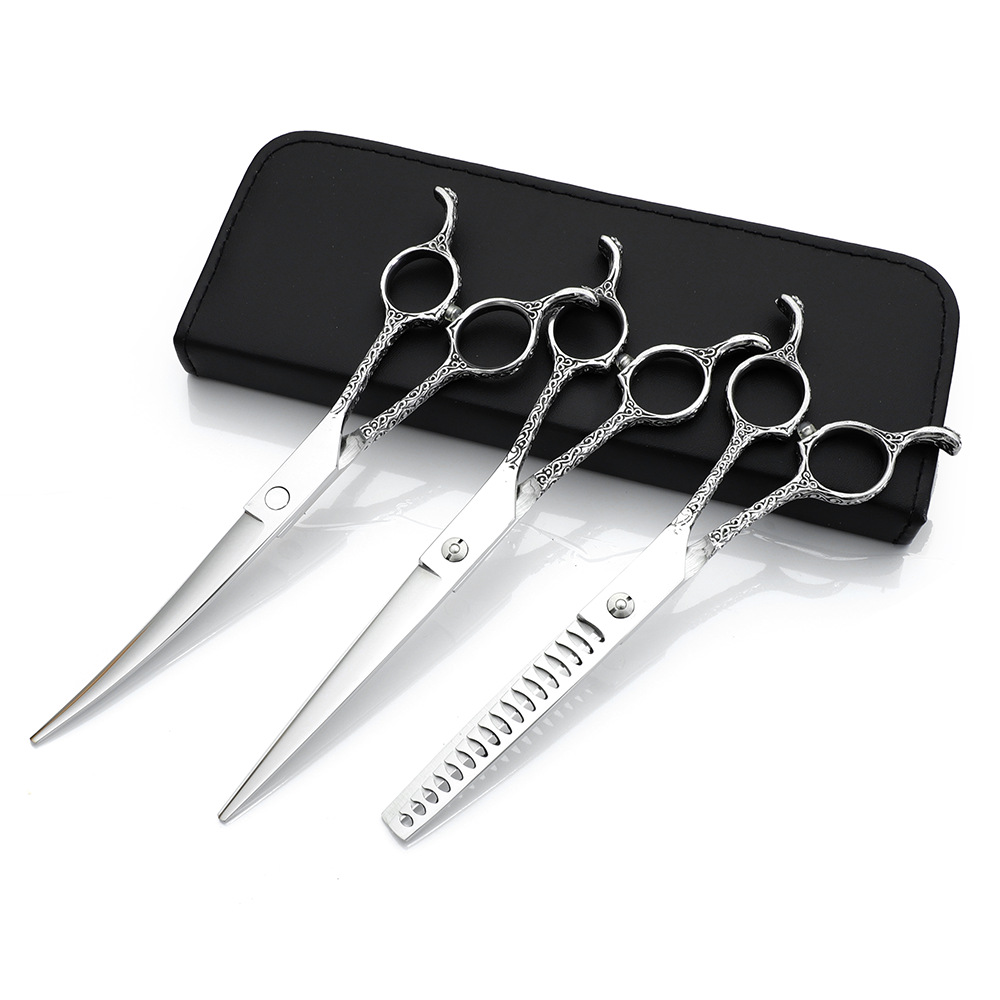 Tijeras de belleza para mascotas tijeras de pelo de peluche tijeras de pelo tijeras curvas herramienta tijeras rectas tijeras curvas tijeras de hueso de pescado traje