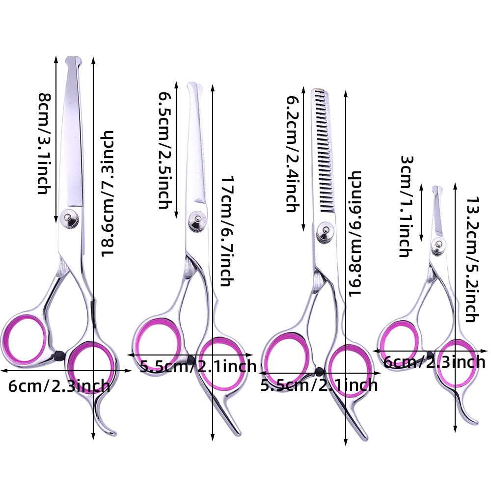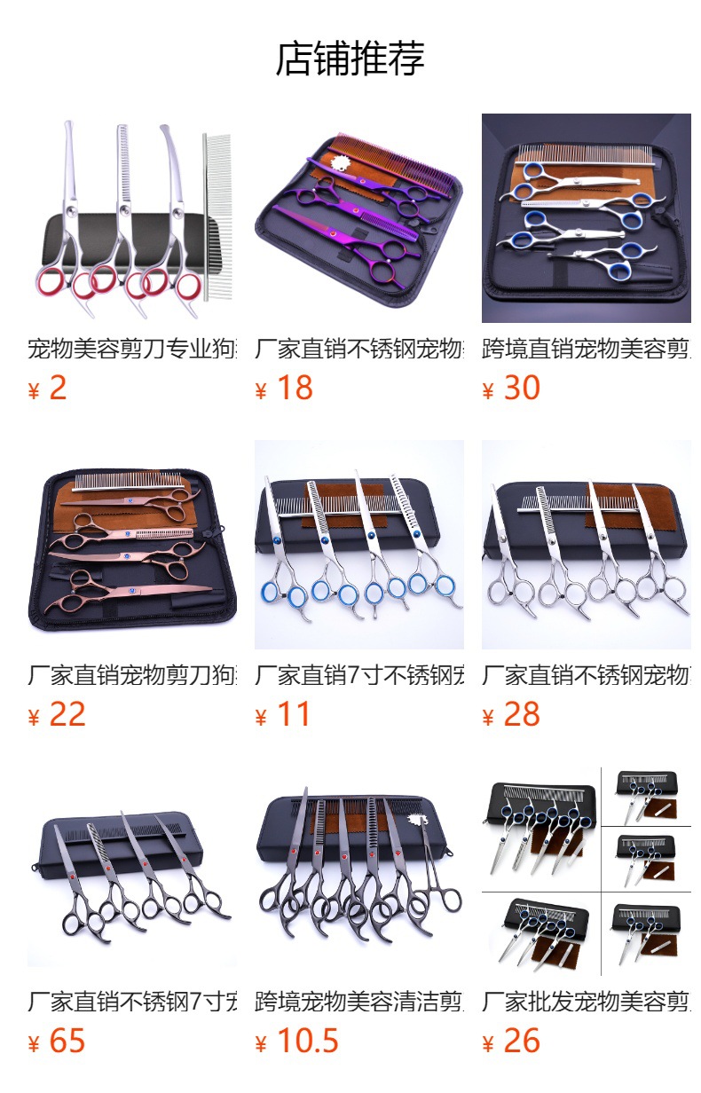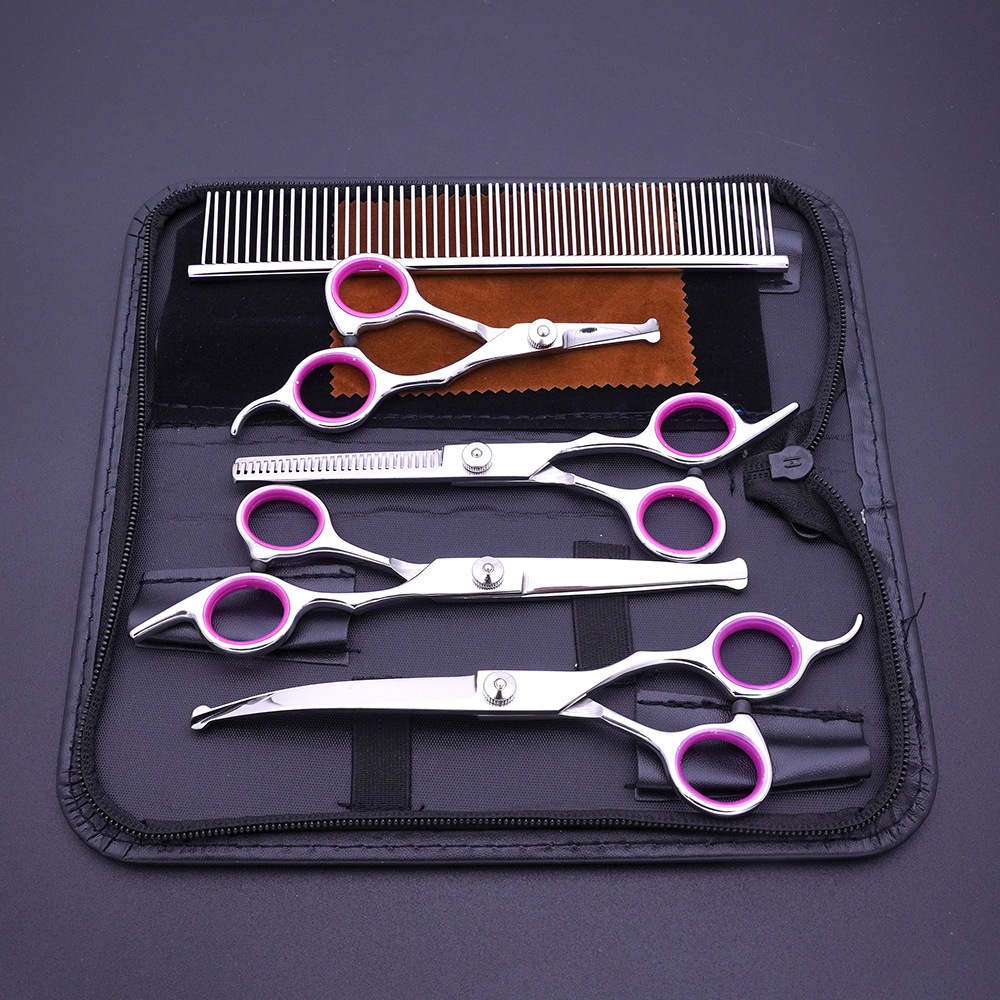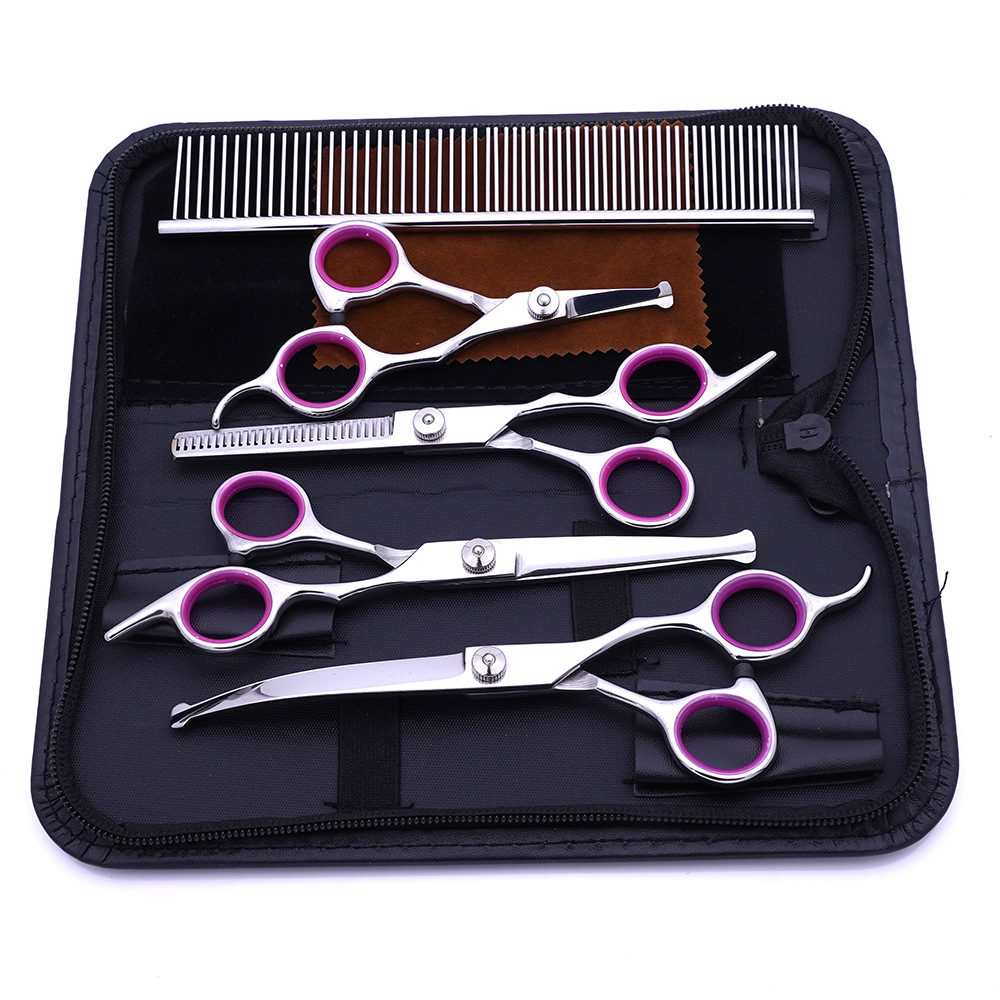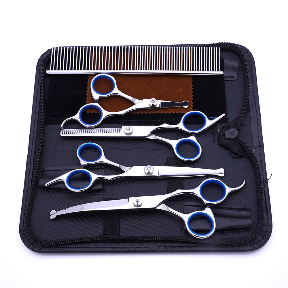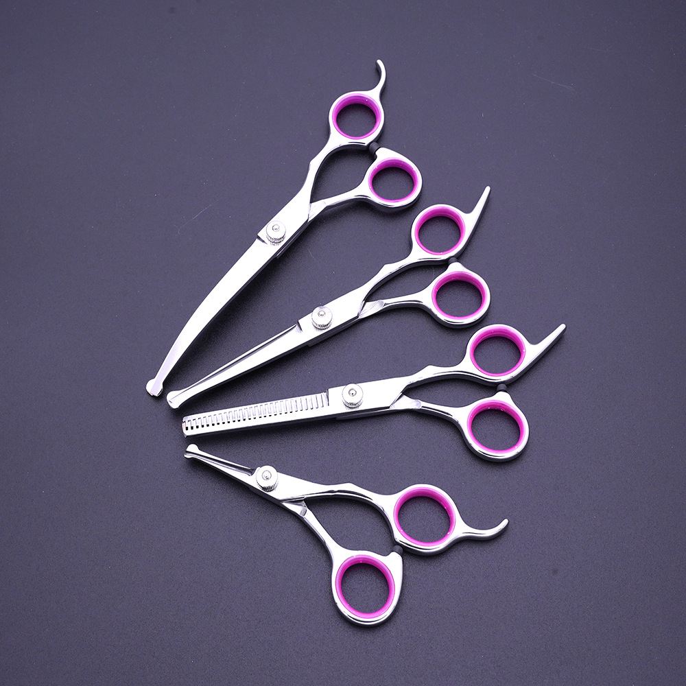 Ventas directas de fábrica de tijeras de aseo para mascotas, tijeras planas profesionales de acero inoxidable, tijeras curvas de corte de pelo, tijeras de dientes delgadas para gatos, tijeras para mascotas