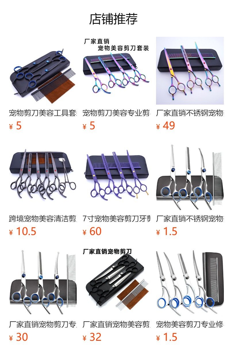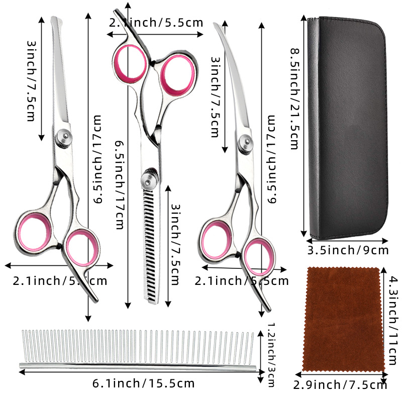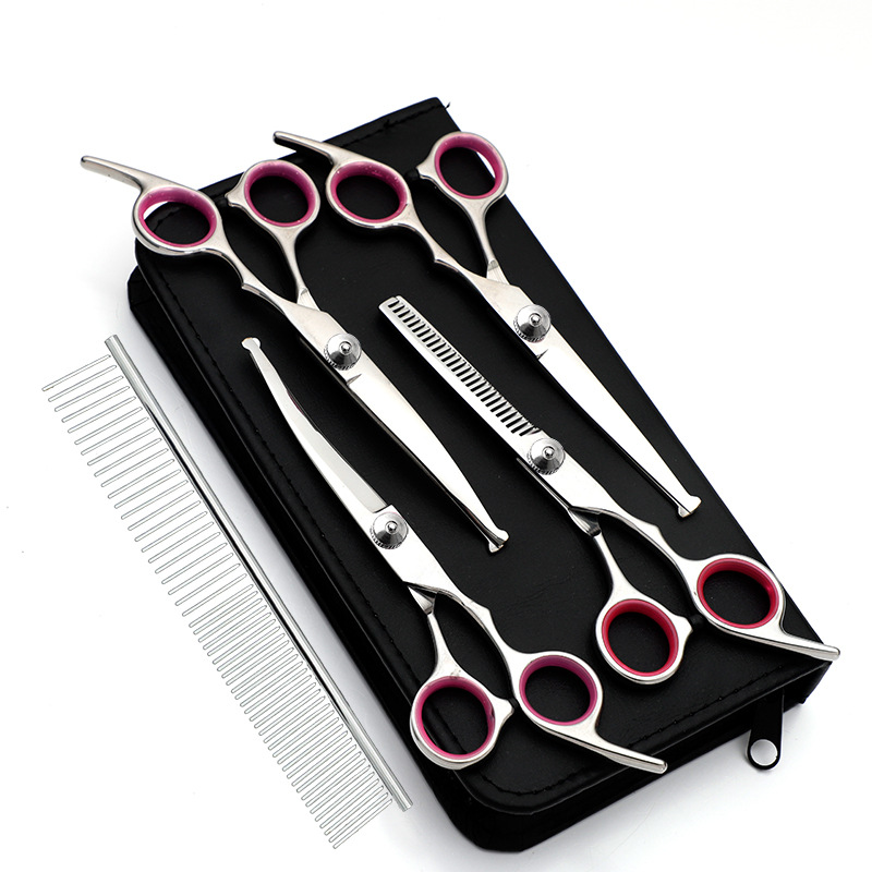 Ventas directas de fábrica de tijeras para mascotas de acero inoxidable, perros y gatos profesionales, tijeras de corte de pelo de cuerpo entero, juego de tijeras para mascotas para el hogar