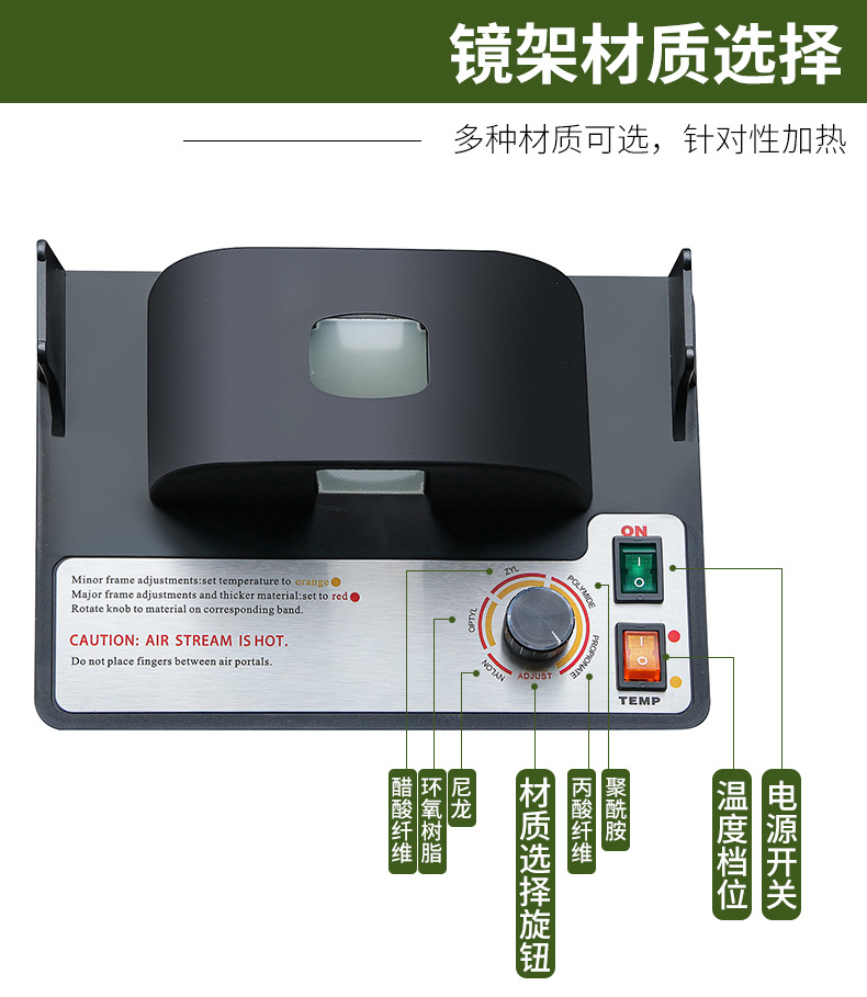 Weizhen 188A montura calentador gafas equipo instrumento placa montura de gafas plástico lámpara de secado de plástico montura de secado de calefacción