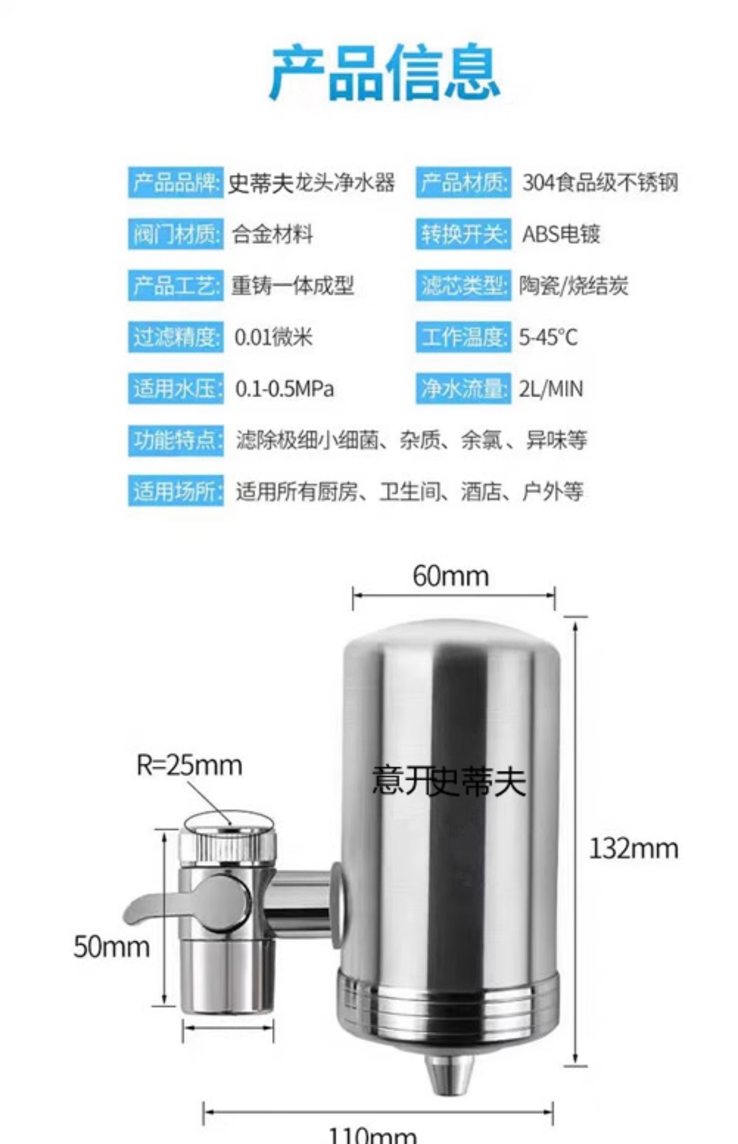 Auténtico filtro de grifo Steve descloración de cocina agua potable directa purificador de agua del grifo filtro de agua de acero inoxidable