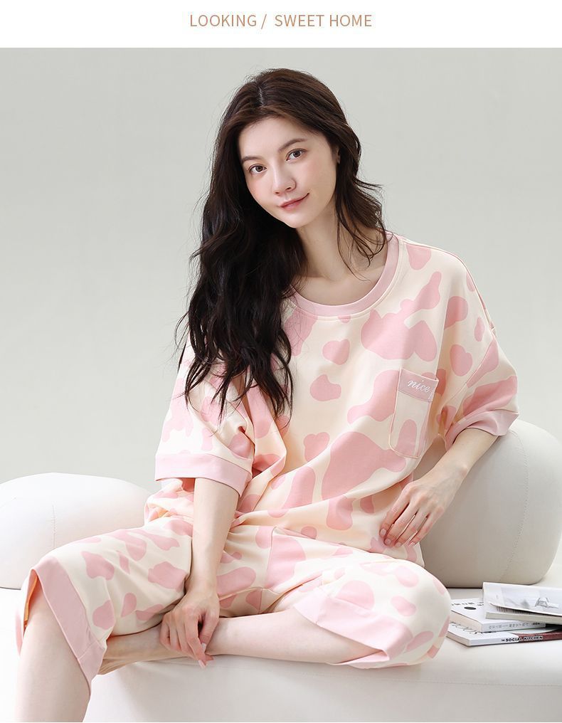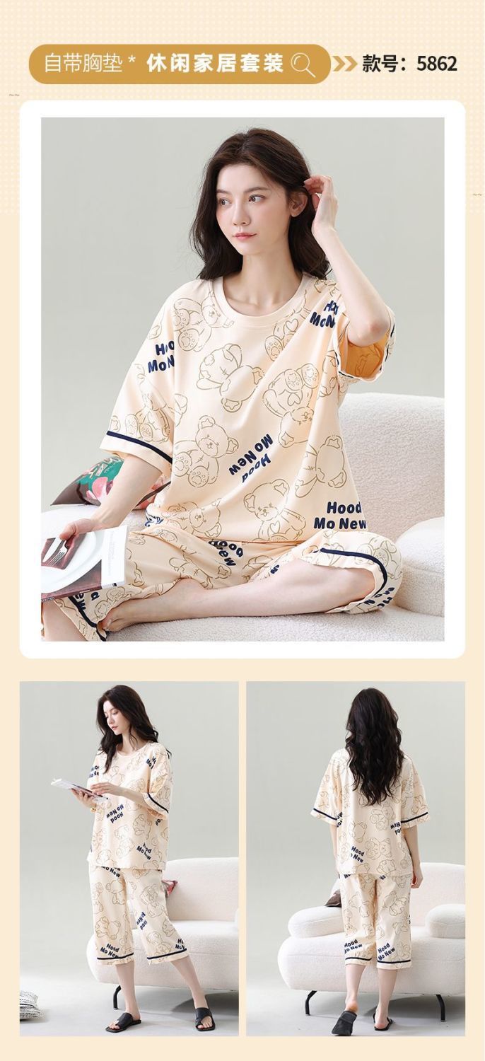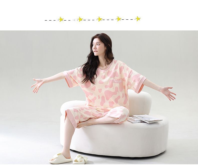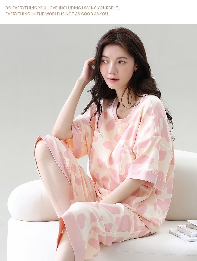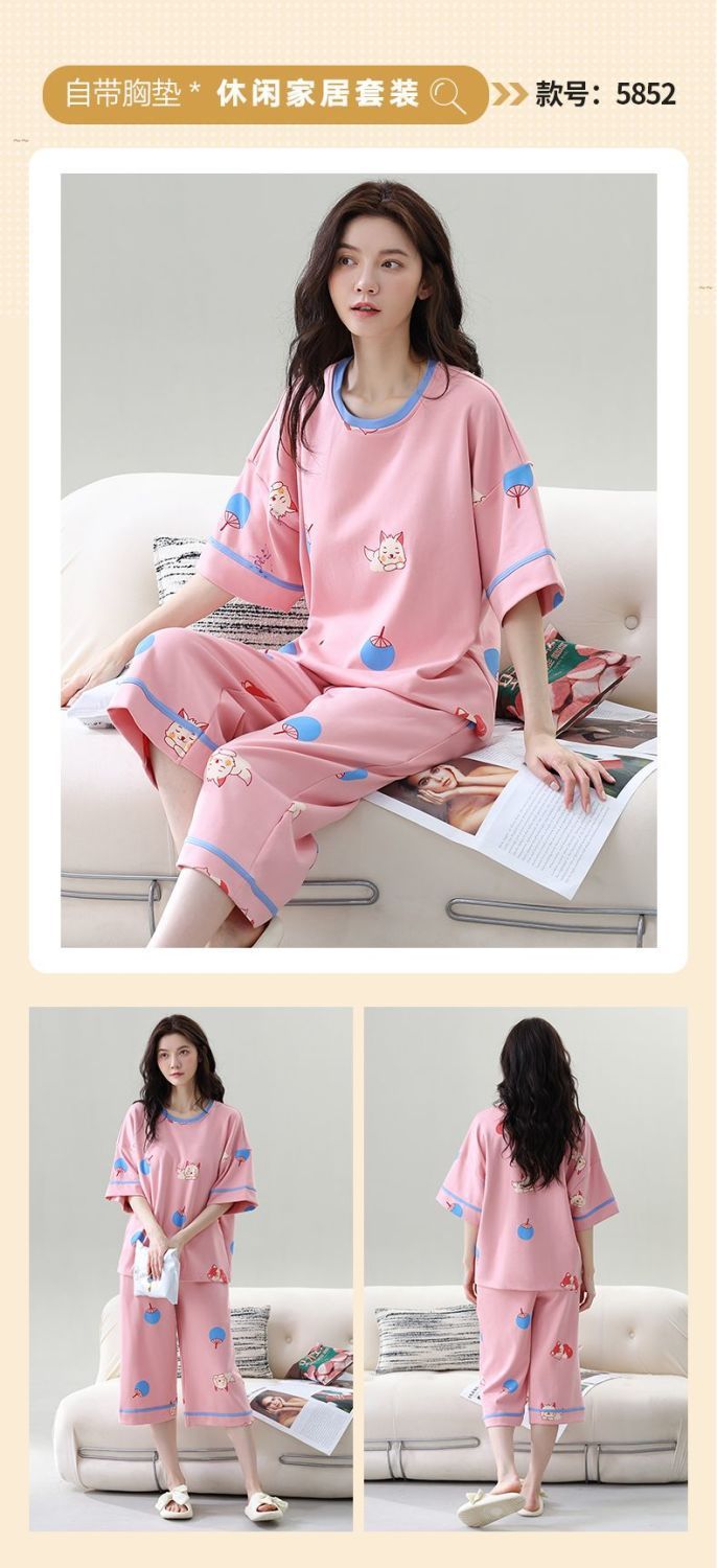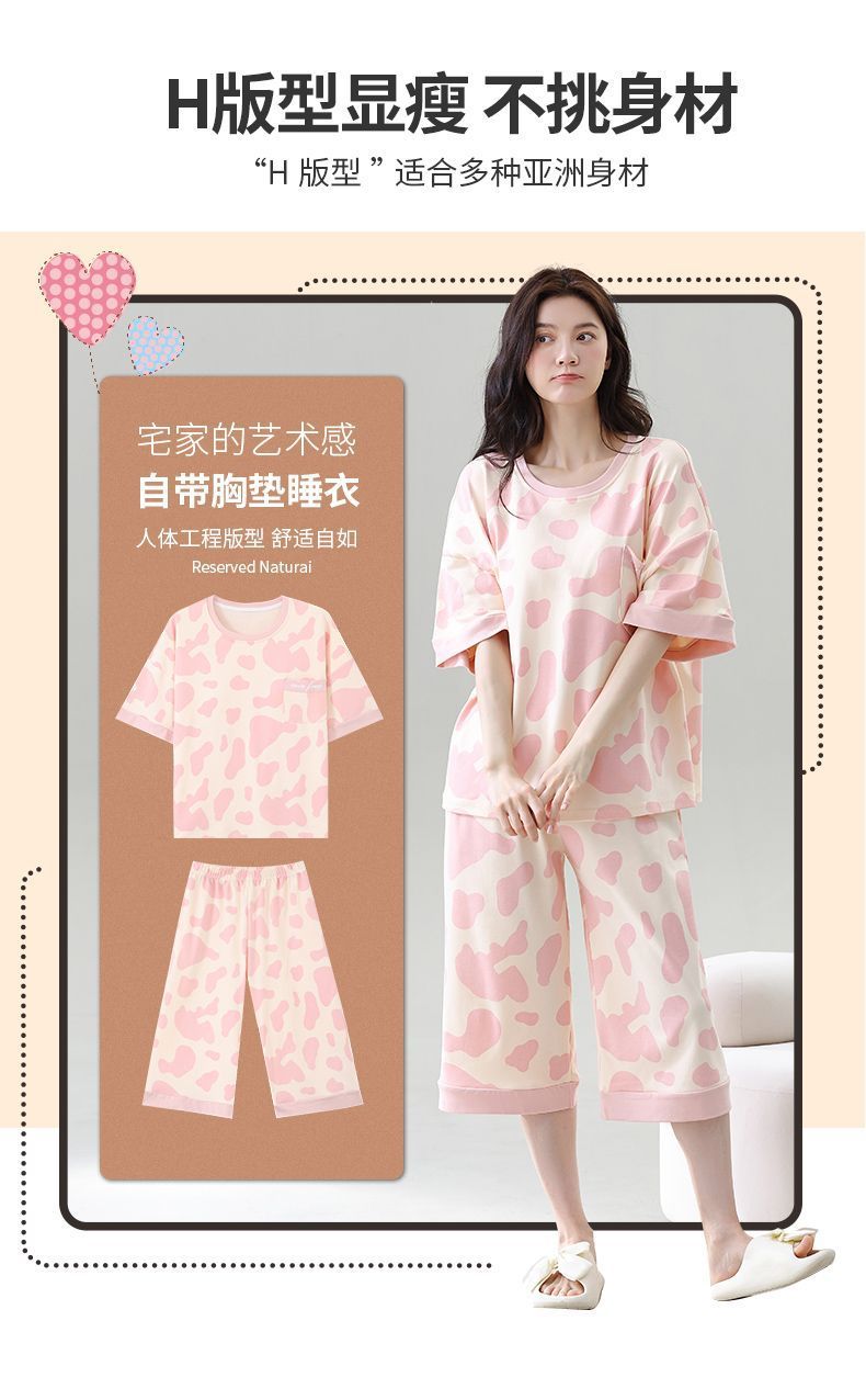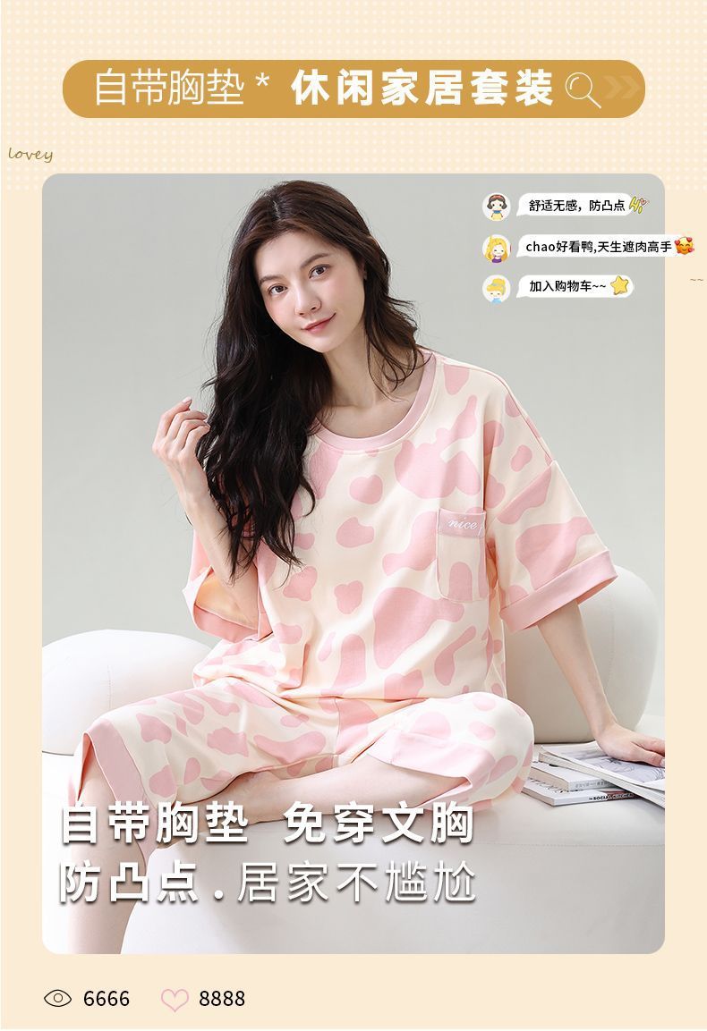 Gordo mm pijamas de talla grande para mujer verano con almohadilla para el pecho de manga corta suéter fino versión coreana suelta para usar traje de servicio a domicilio