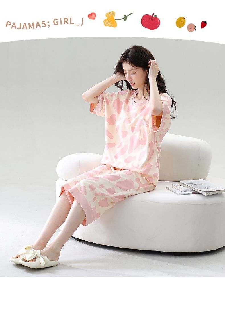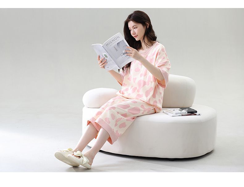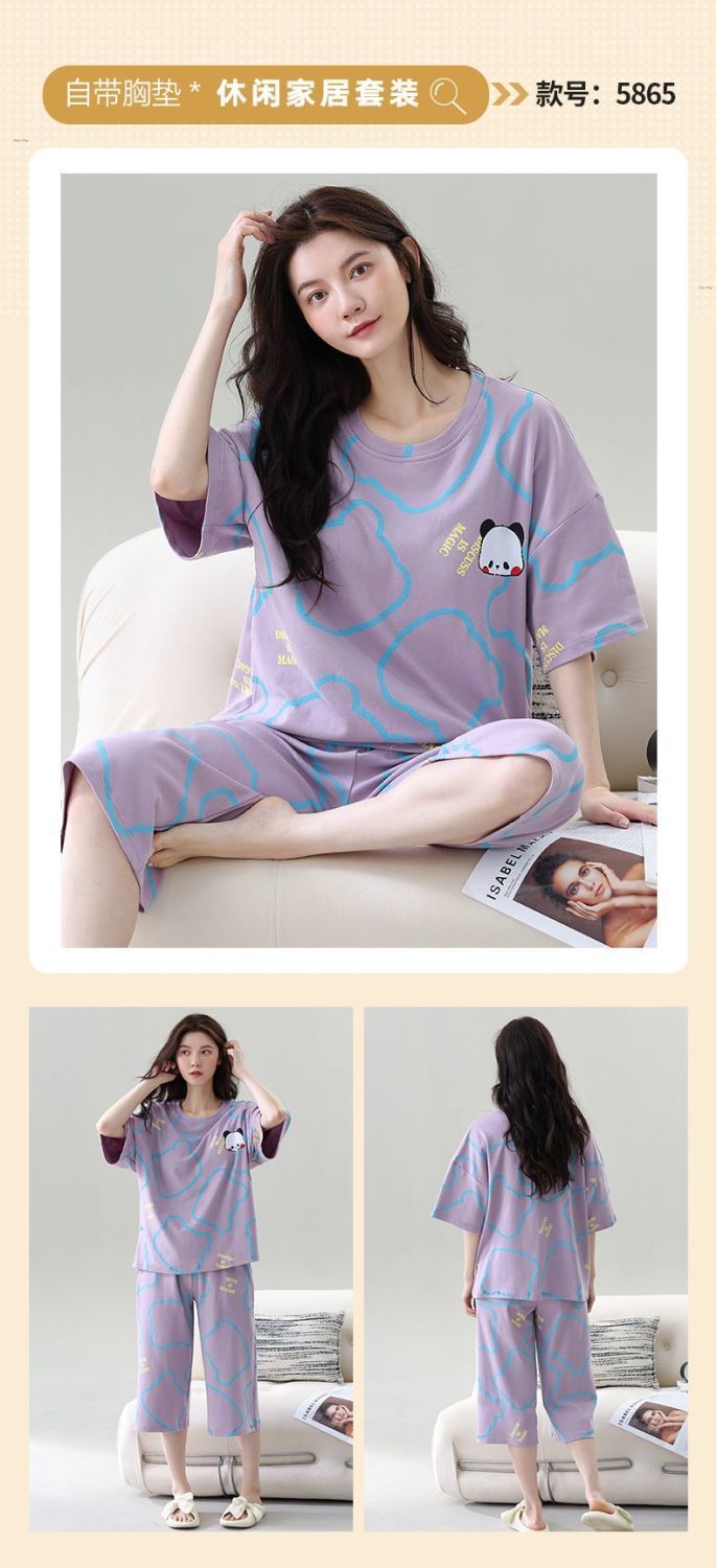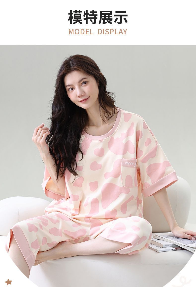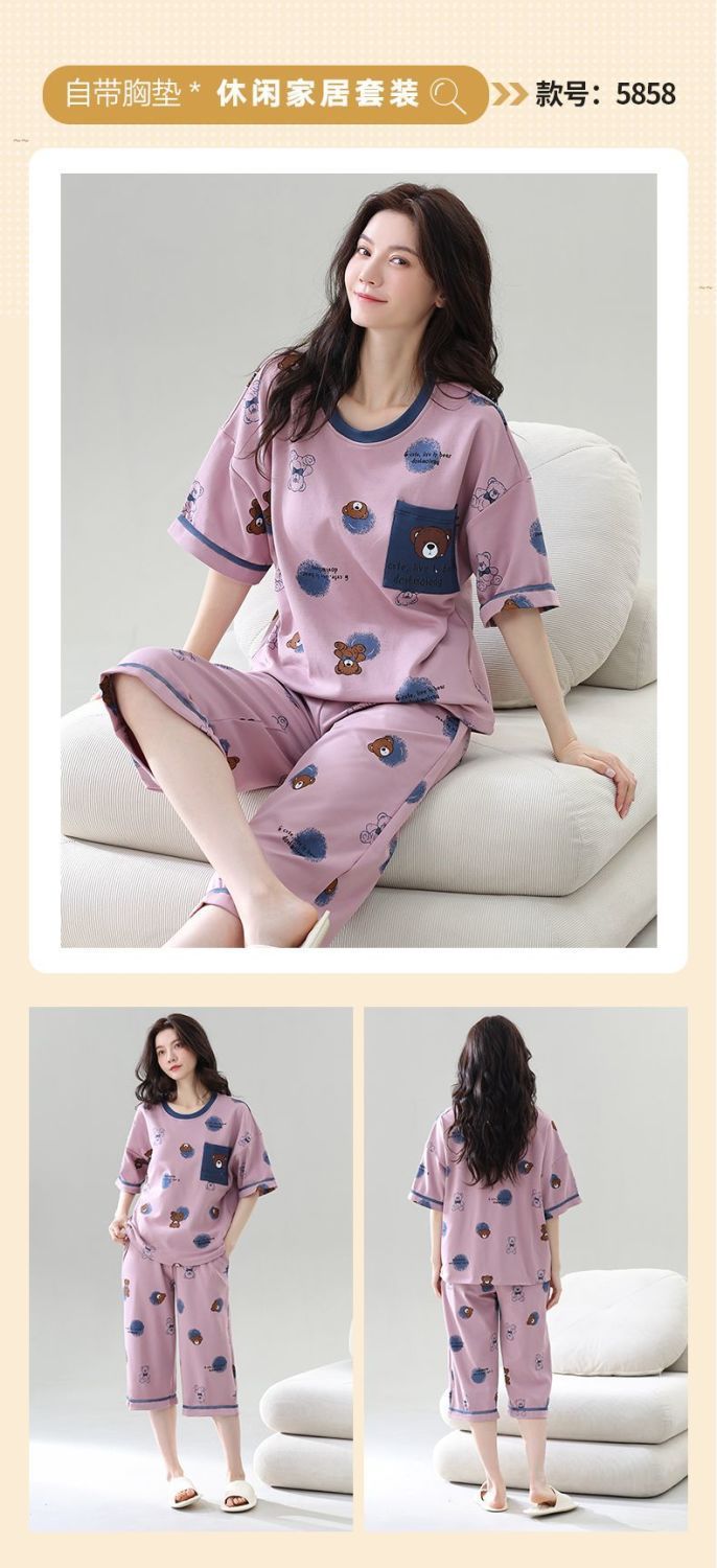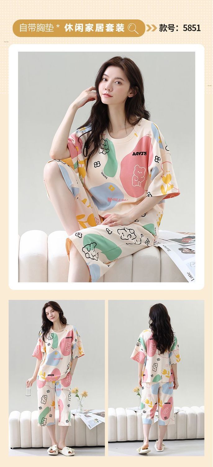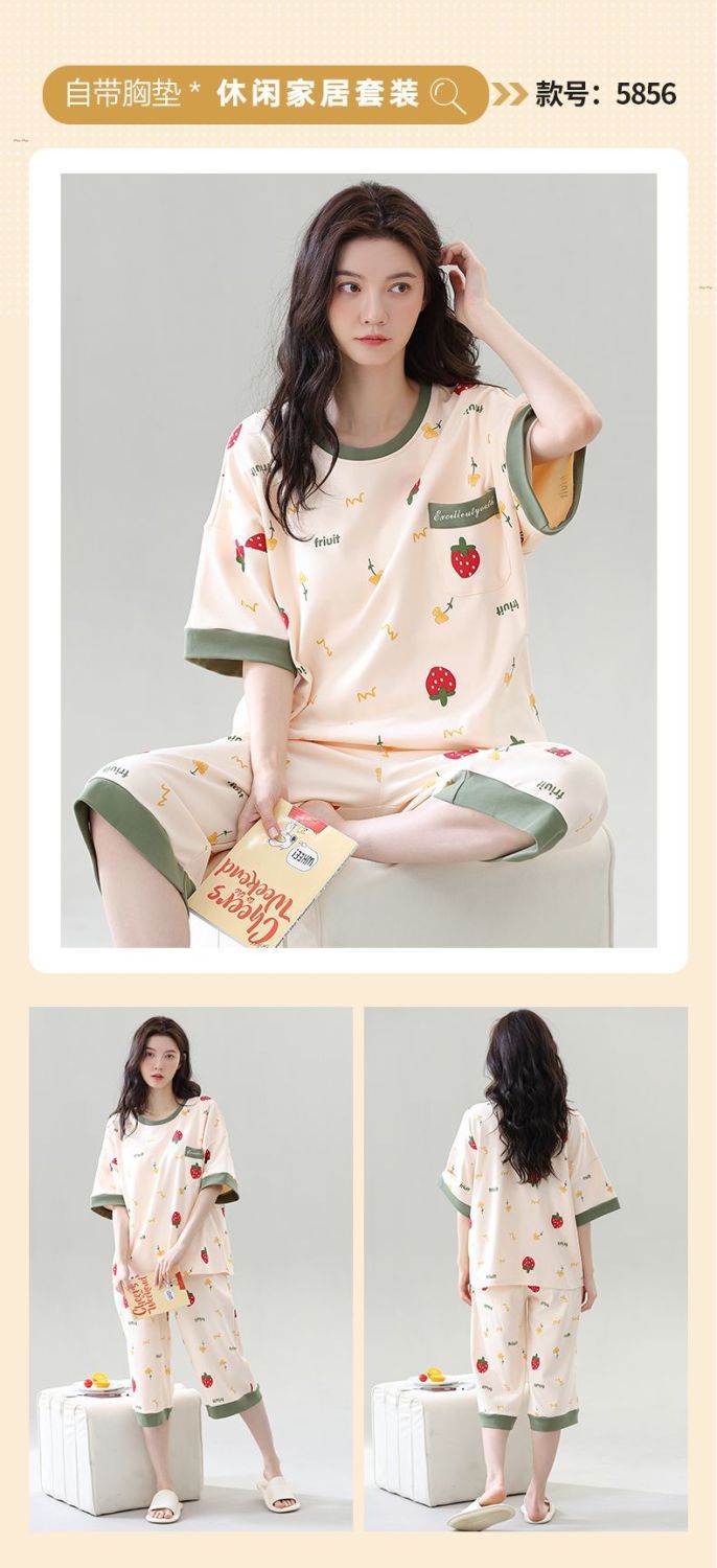 Gordo mm pijamas de talla grande para mujer verano con almohadilla para el pecho de manga corta suéter fino versión coreana suelta para usar traje de servicio a domicilio