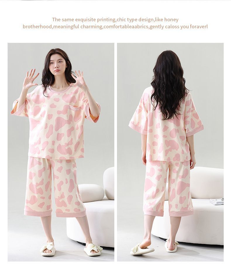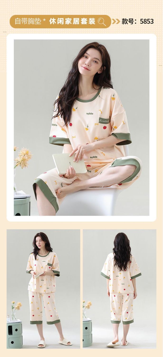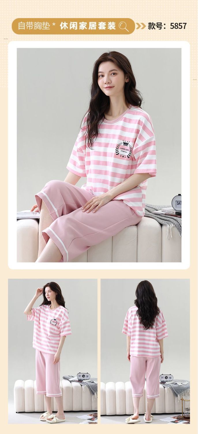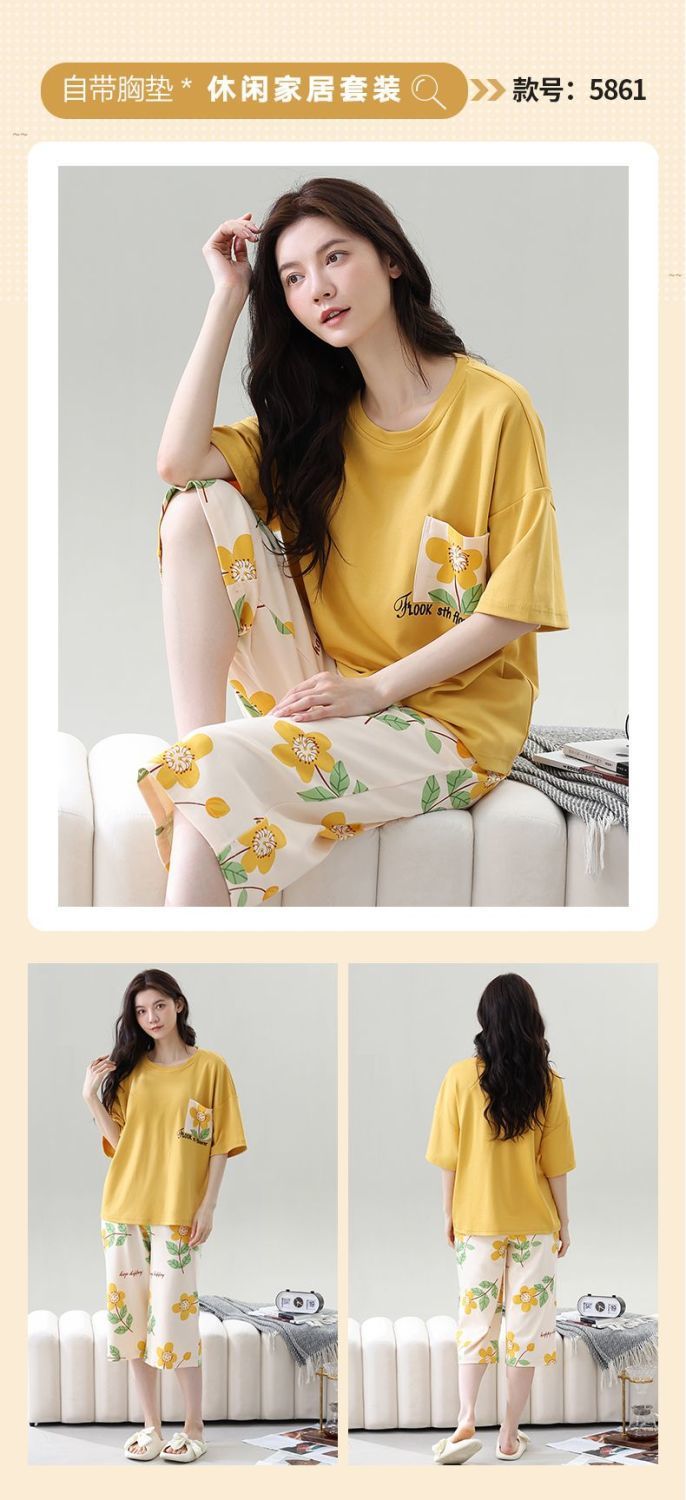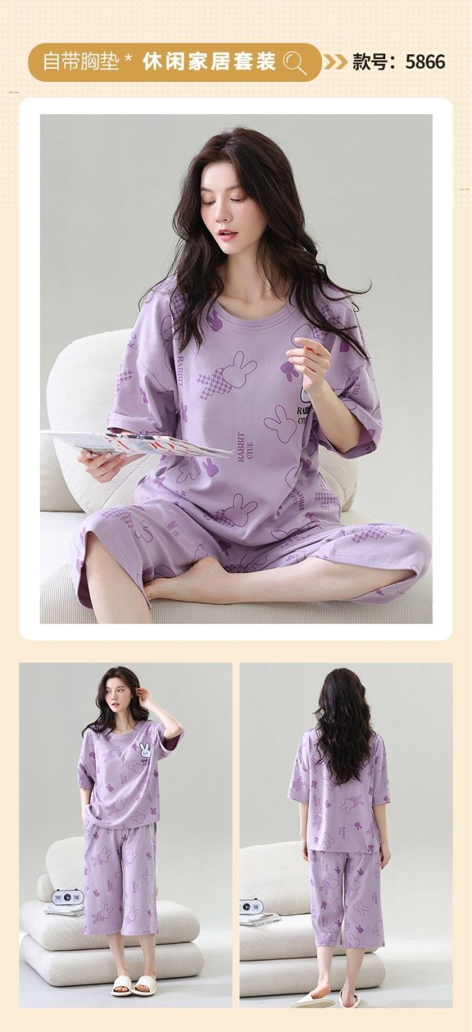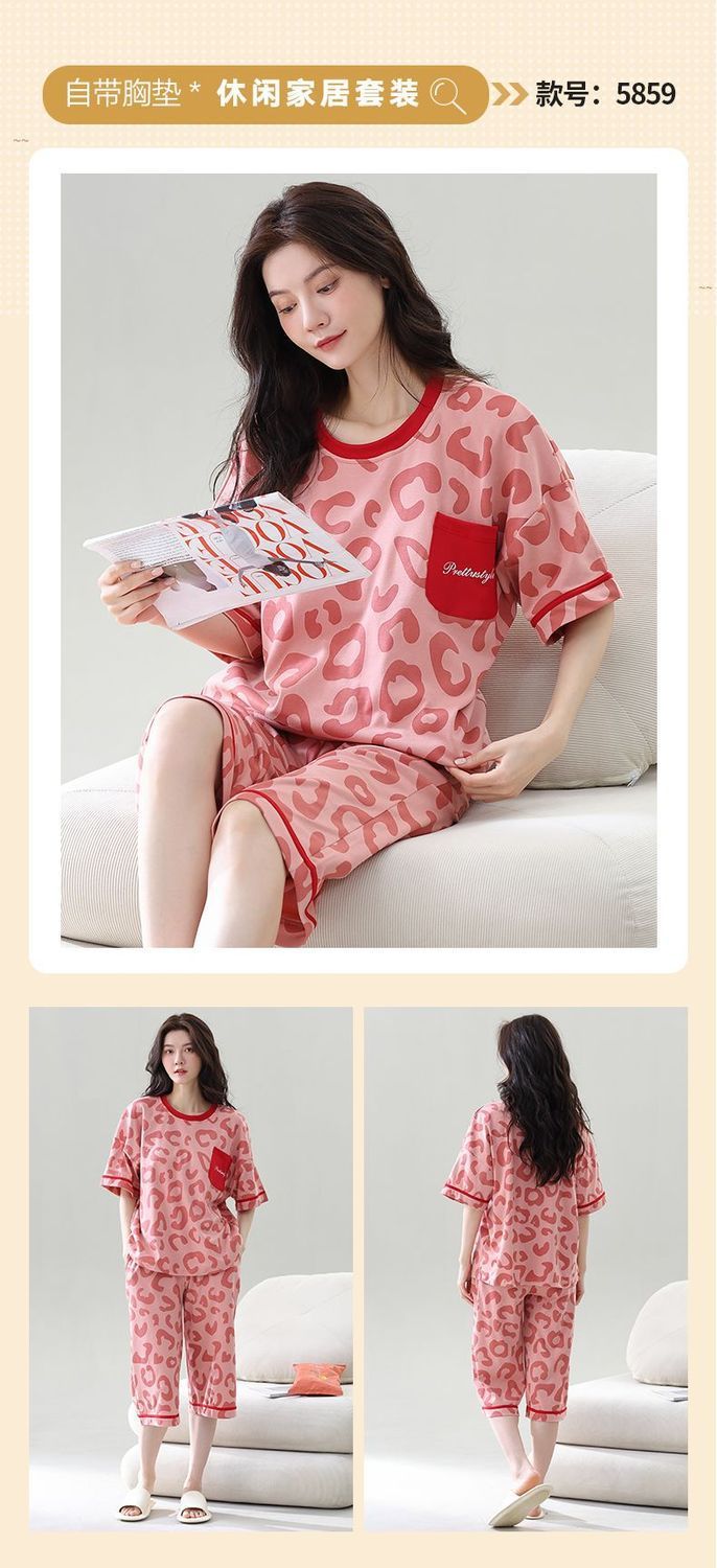 Gordo mm pijamas de talla grande para mujer verano con almohadilla para el pecho de manga corta suéter fino versión coreana suelta para usar traje de servicio a domicilio
