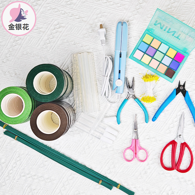 Varilla de torsión hecha a mano No. 2 Herramienta de varilla de flores Cinta floral Alicates de tijera Corazón de flor Estambre de flor Barra de pegamento termofusible Gel de alcohol