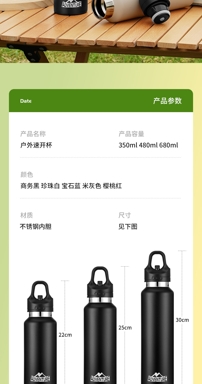 Taza termo rebotando con una mano, apertura con un botón, cubierta, deportes al aire libre de gran capacidad, bicicleta, montañismo, botella de agua portátil al por mayor