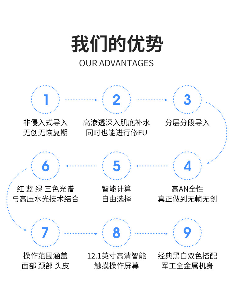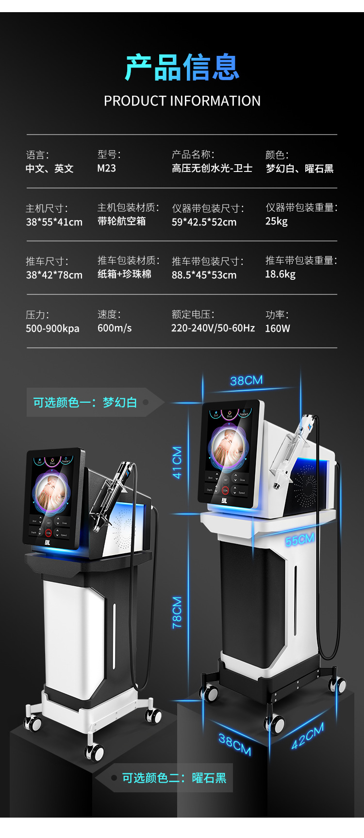 Han Guorui Jiazi M23 instrumento de importación de luz de agua de penetración de chorro de alta presión no invasiva para el salón de belleza hidratante