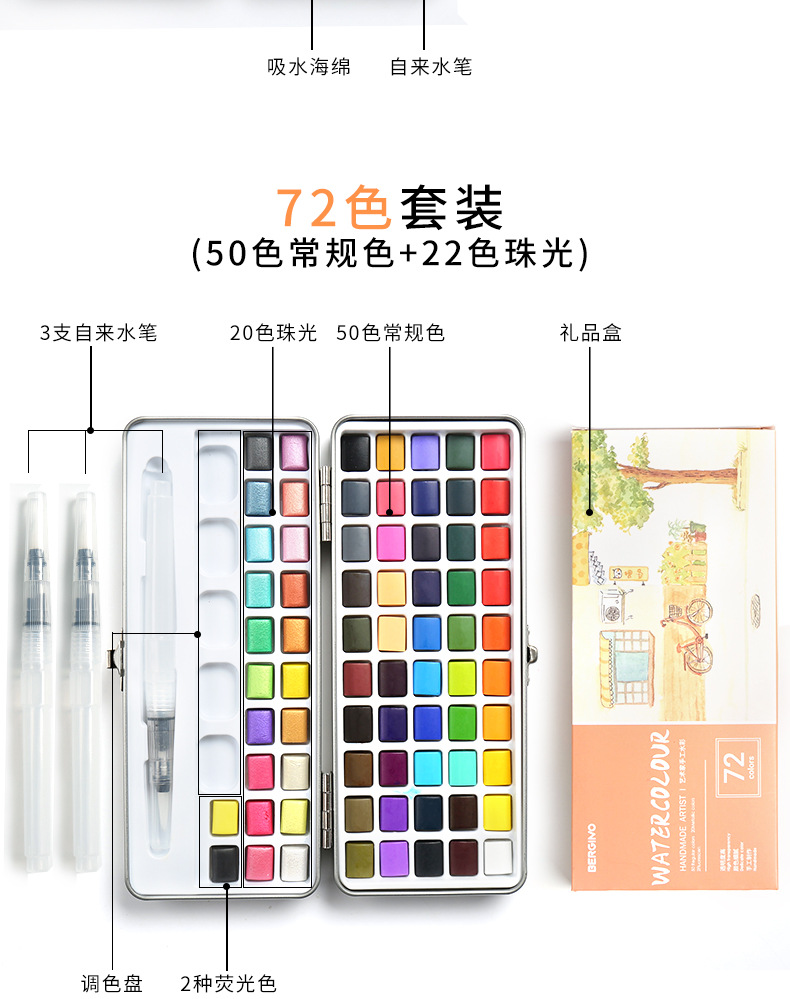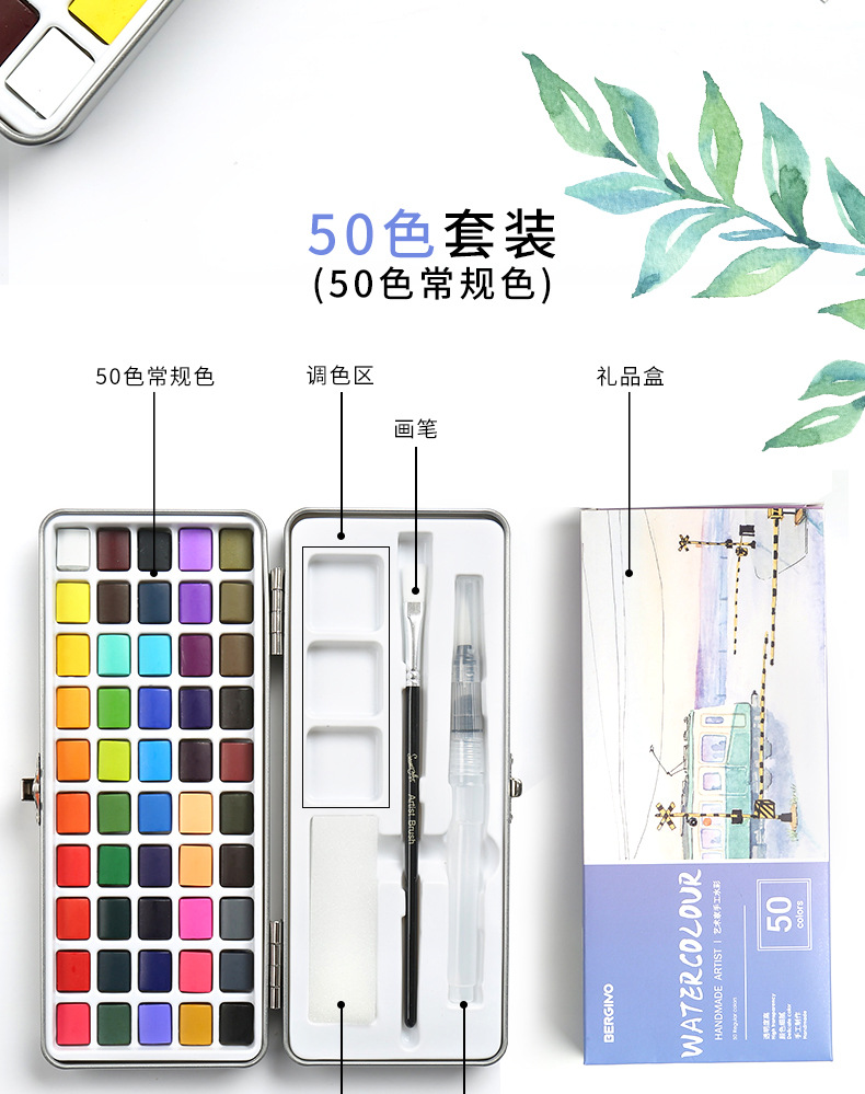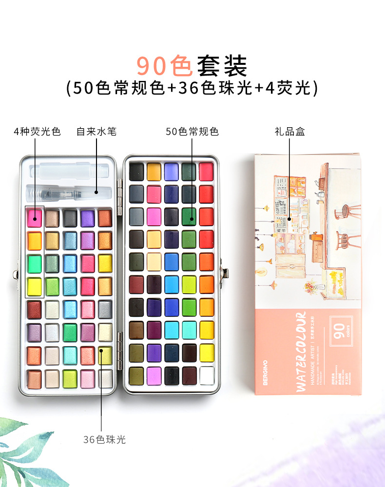 Boge pintura material sólido acuarela traje nacarado pintura arte especial portátil pintado a mano acuarela pintura al por mayor