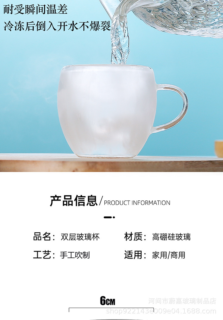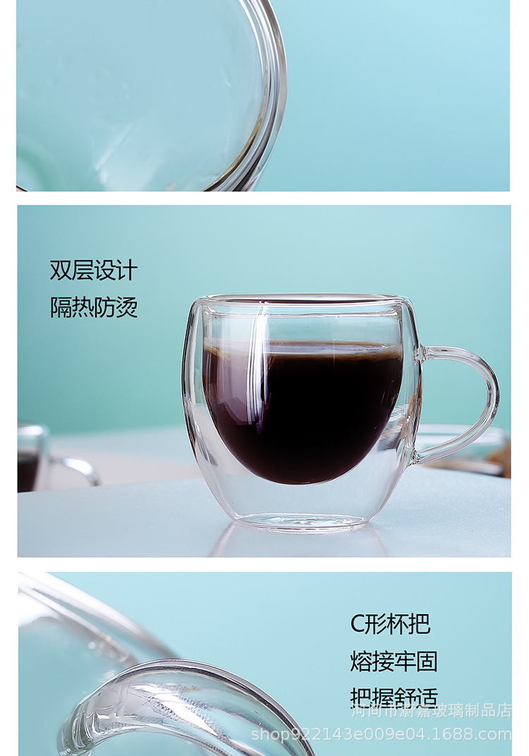Taza de café Mango de doble capa Taza de vidrio con aislamiento térmico Taza de doble capa en forma de huevo Taza de café con leche Bebida caliente simple de borosilicato