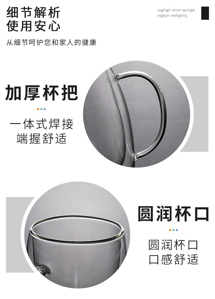 Taza de vidrio de doble capa de aislamiento térmico Taza de agua de vidrio transparente de leche con asa doméstica Taza de café de oreja plana fabricante al por mayor