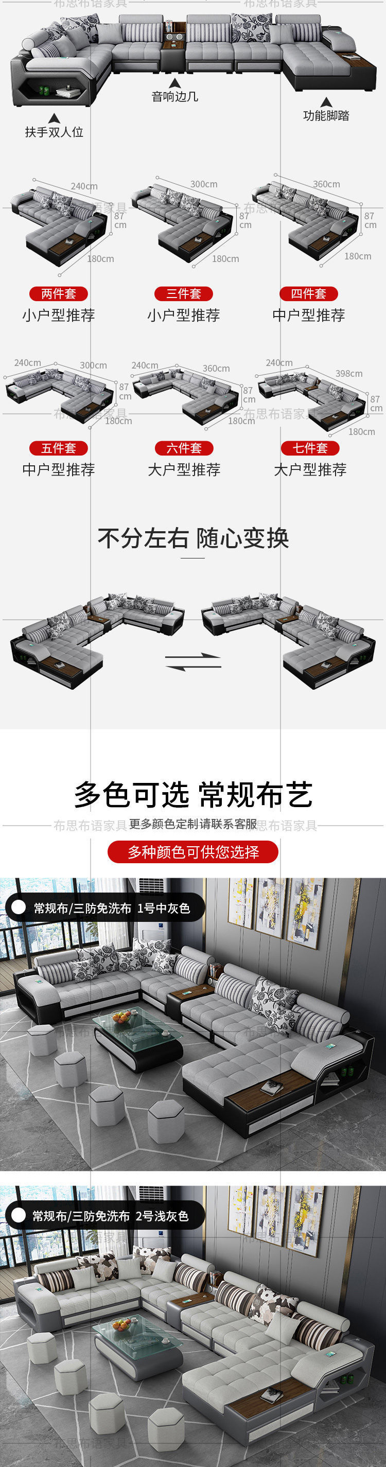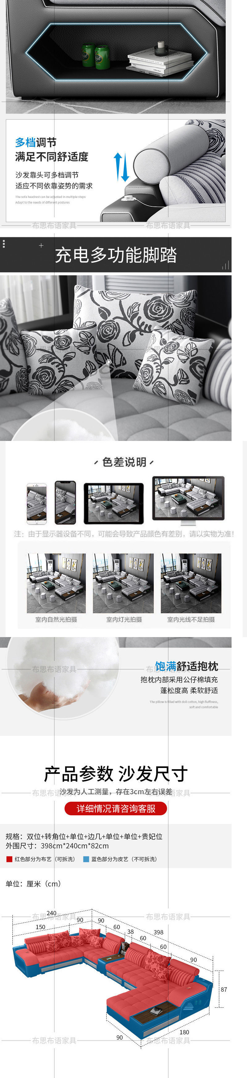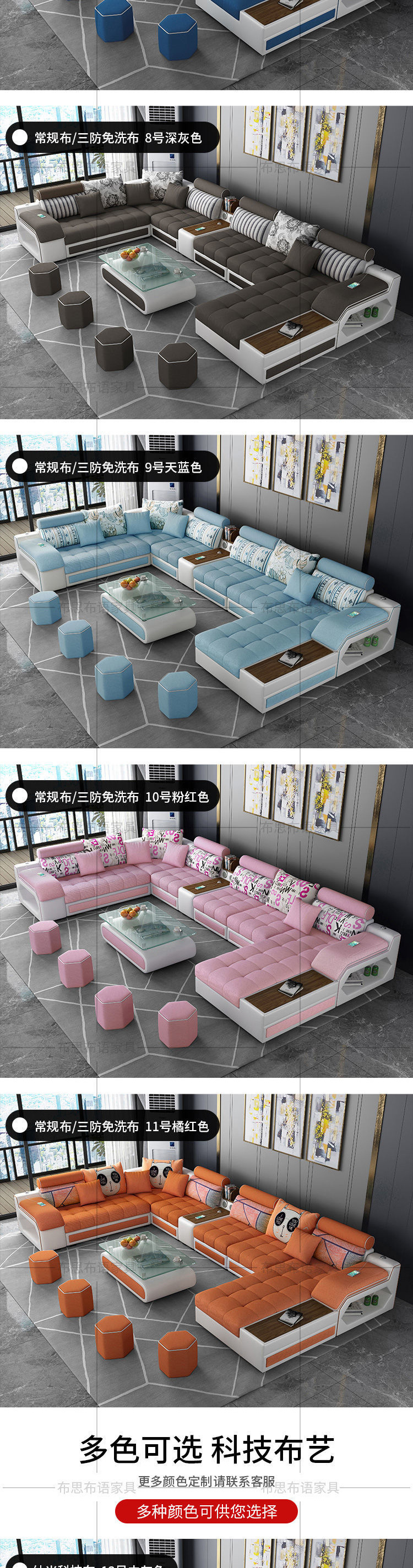Ao P4 combinación de sofá de tela de cuero, simple moderno, extraíble, lavable, tamaño pequeño, látex, tecnología desechable