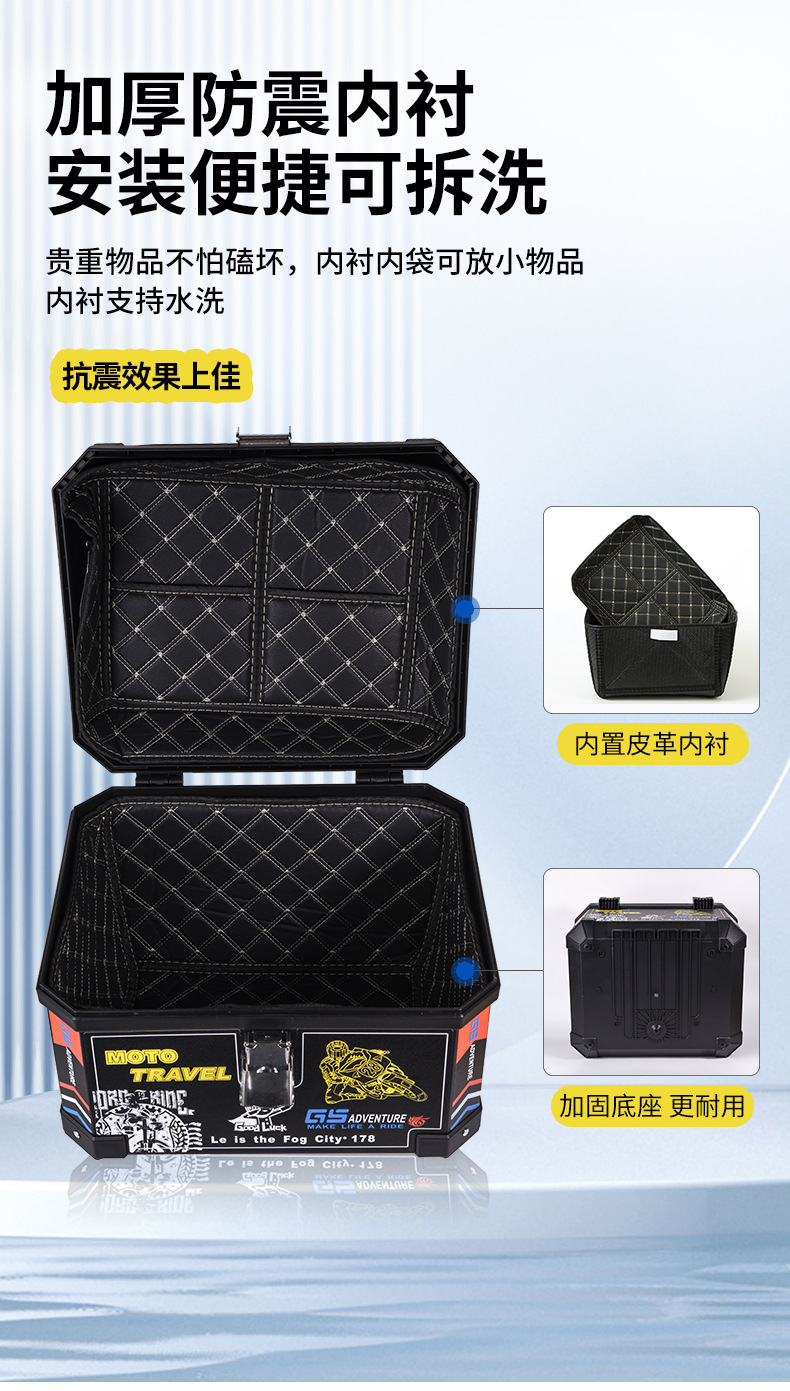 Fábrica al por mayor 57L caja de cola de coche eléctrico extra grande caja de almacenamiento de motocicleta anti-caída gruesa baúl de coche eléctrico