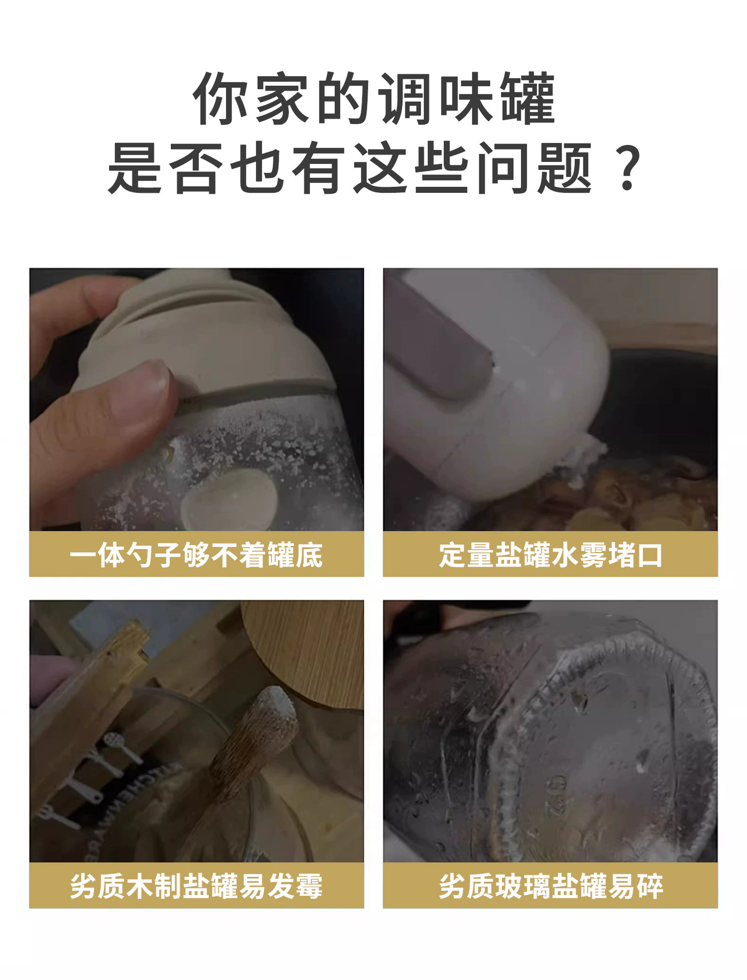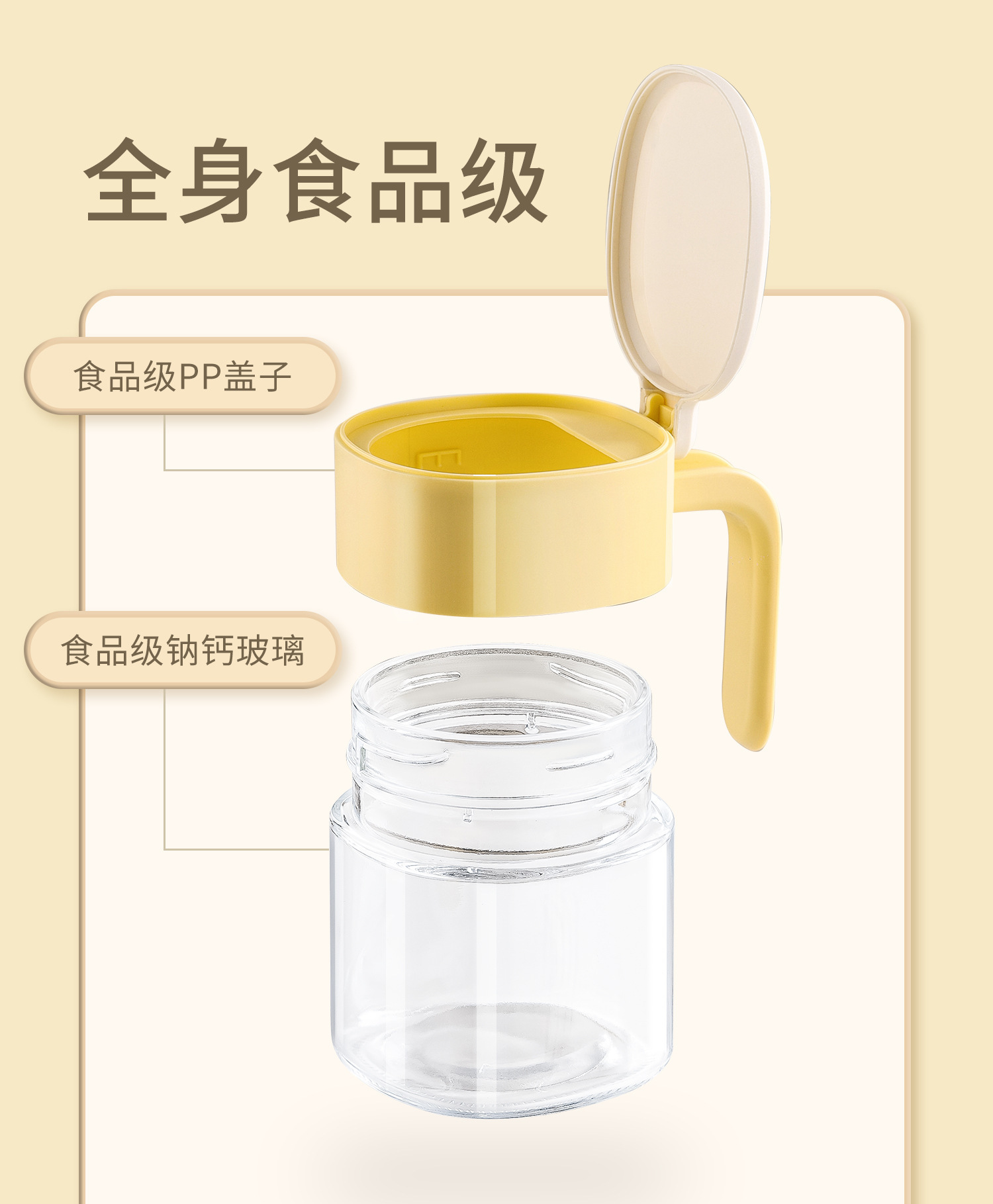 Tarro de condimento, botella de condimento de cocina, caja de condimento para el hogar, tanque de condimento de vidrio, tanque de sal sellado a prueba de humedad, juego de MSG con cuchara