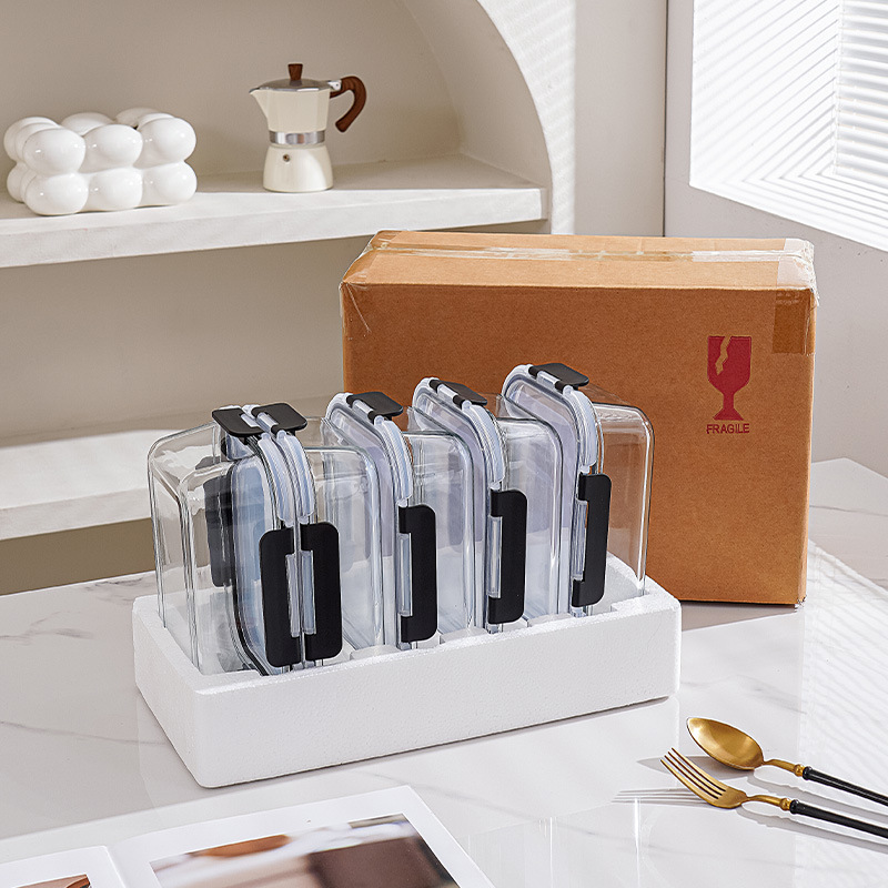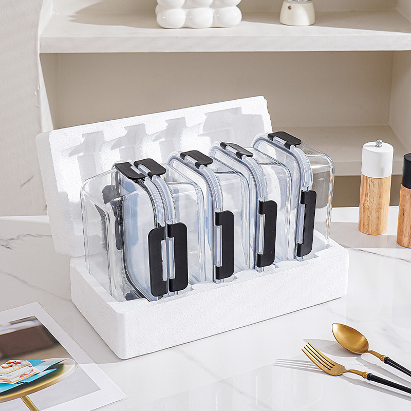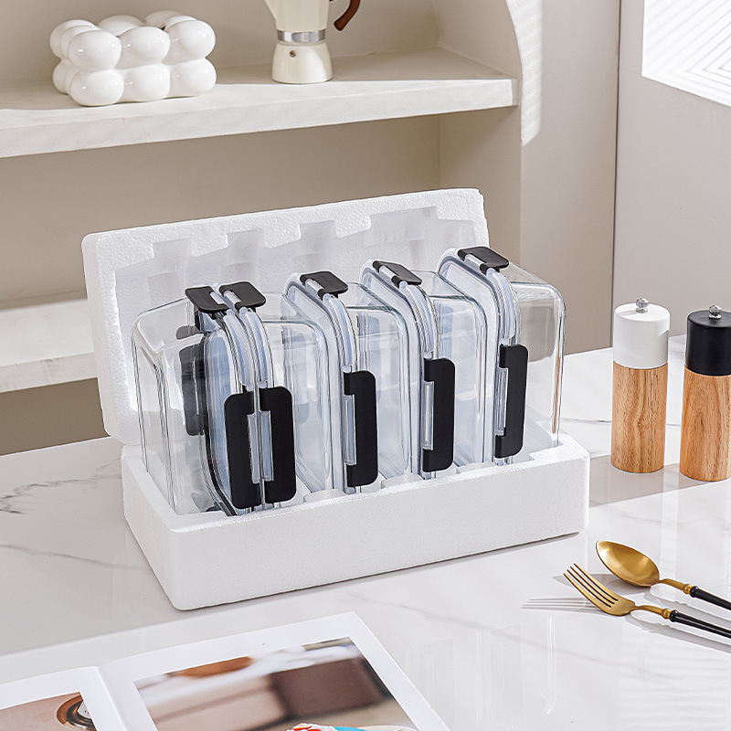 Fiambrera de vidrio rectangular juego de 10 piezas de caja de conservación de productos frescos de Amazon juego de caja de almuerzo de vidrio de borosilicato resistente a altas temperaturas