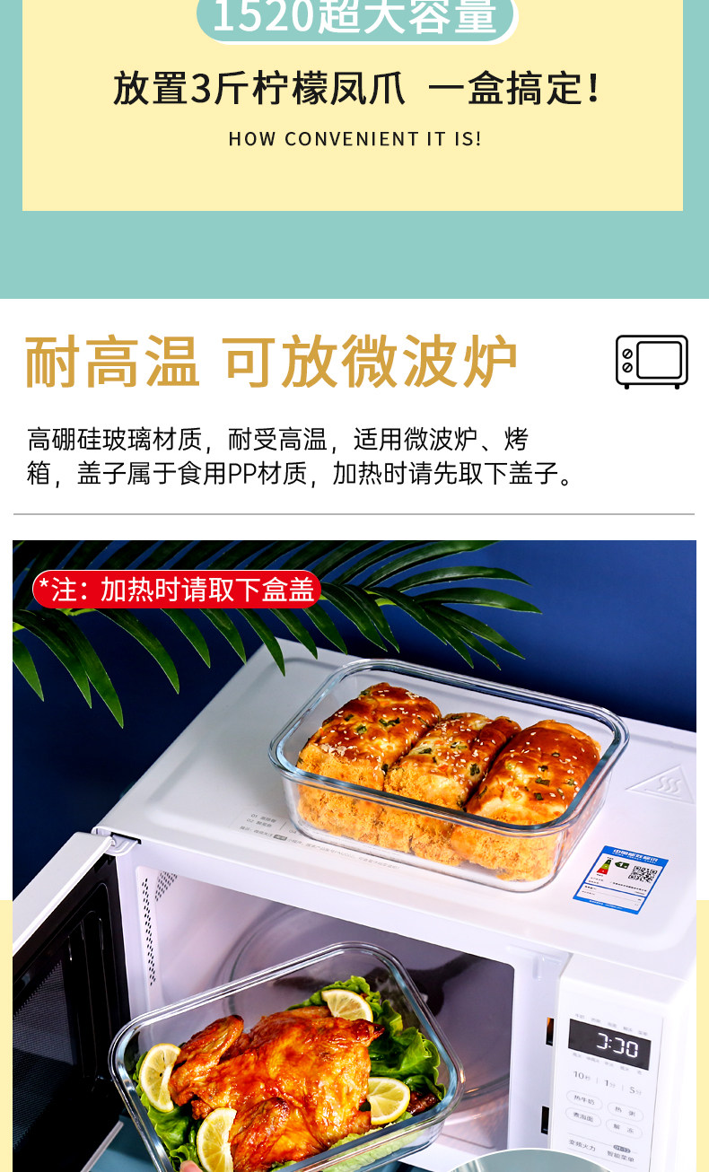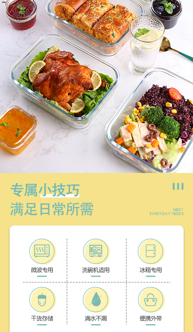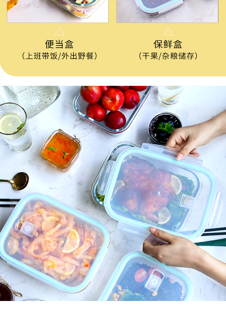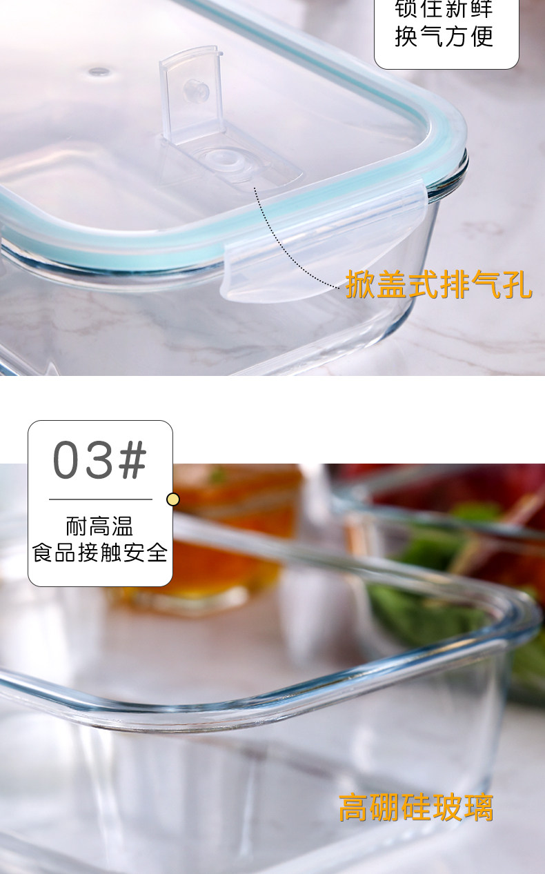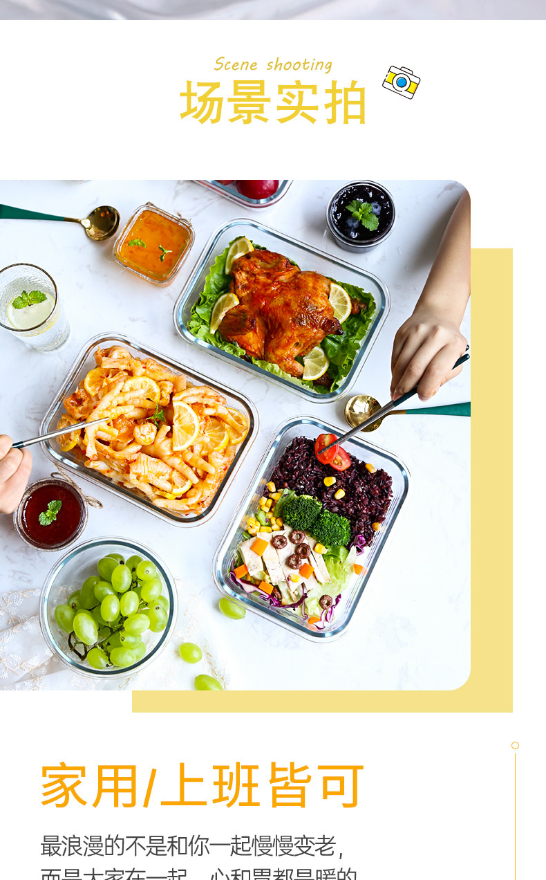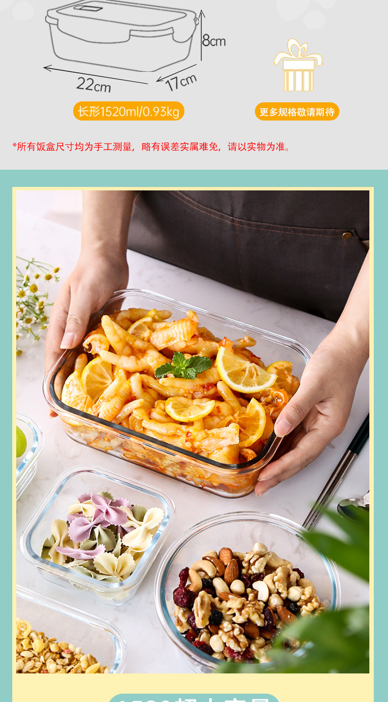 Fiambrera de gran capacidad, calefacción de microondas, trabajadores de oficina especiales con lonchera de arroz, caja de conservación de vidrio, caja de almuerzo con tapa