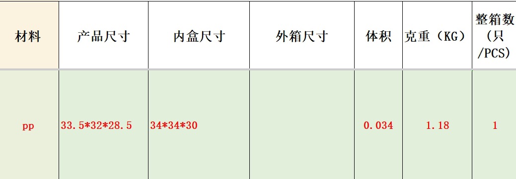 | Material | PP |