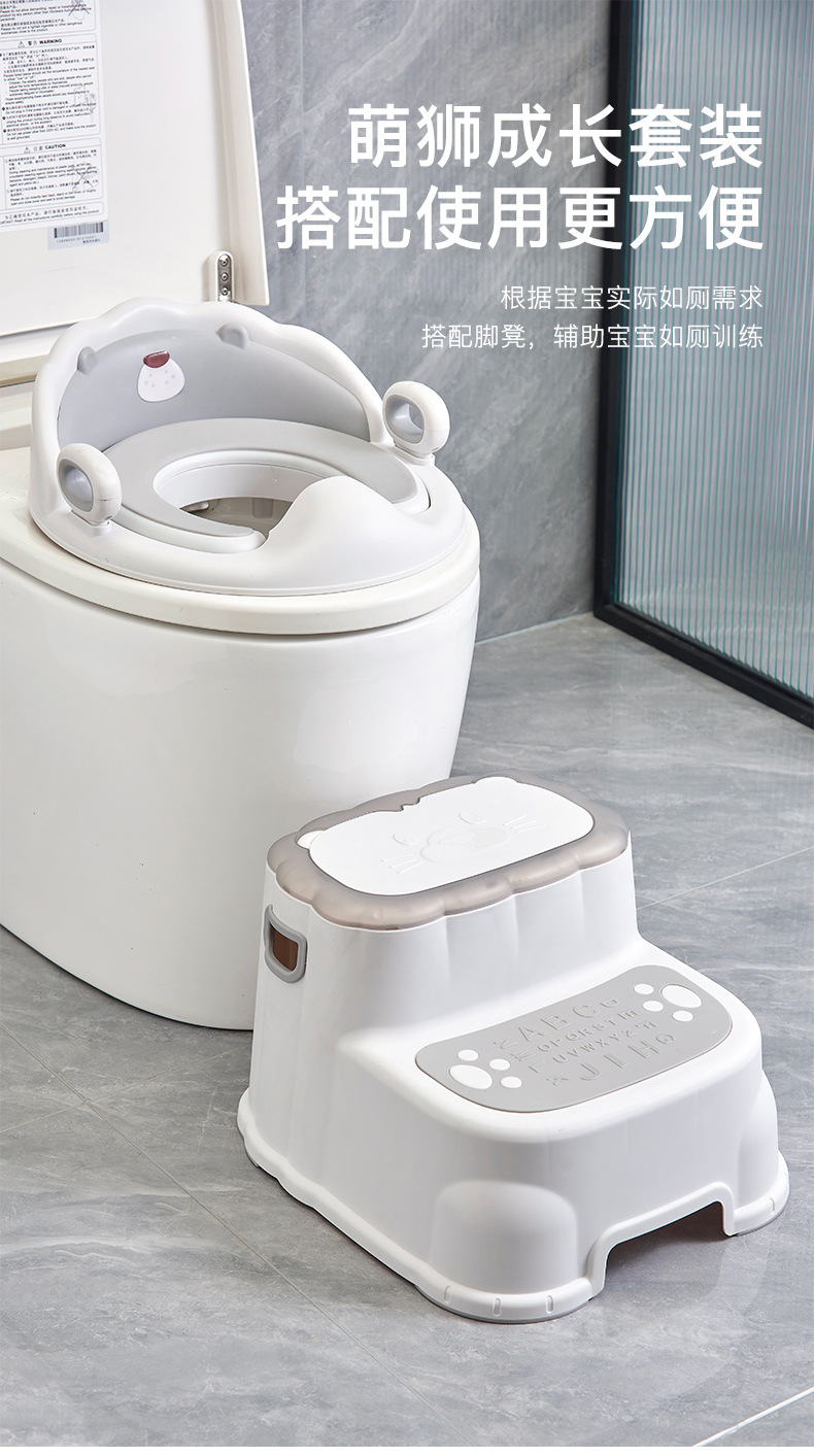 Lindo taburete de pie de león + asiento de inodoro (gris glaciar) con luz