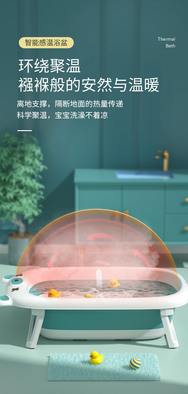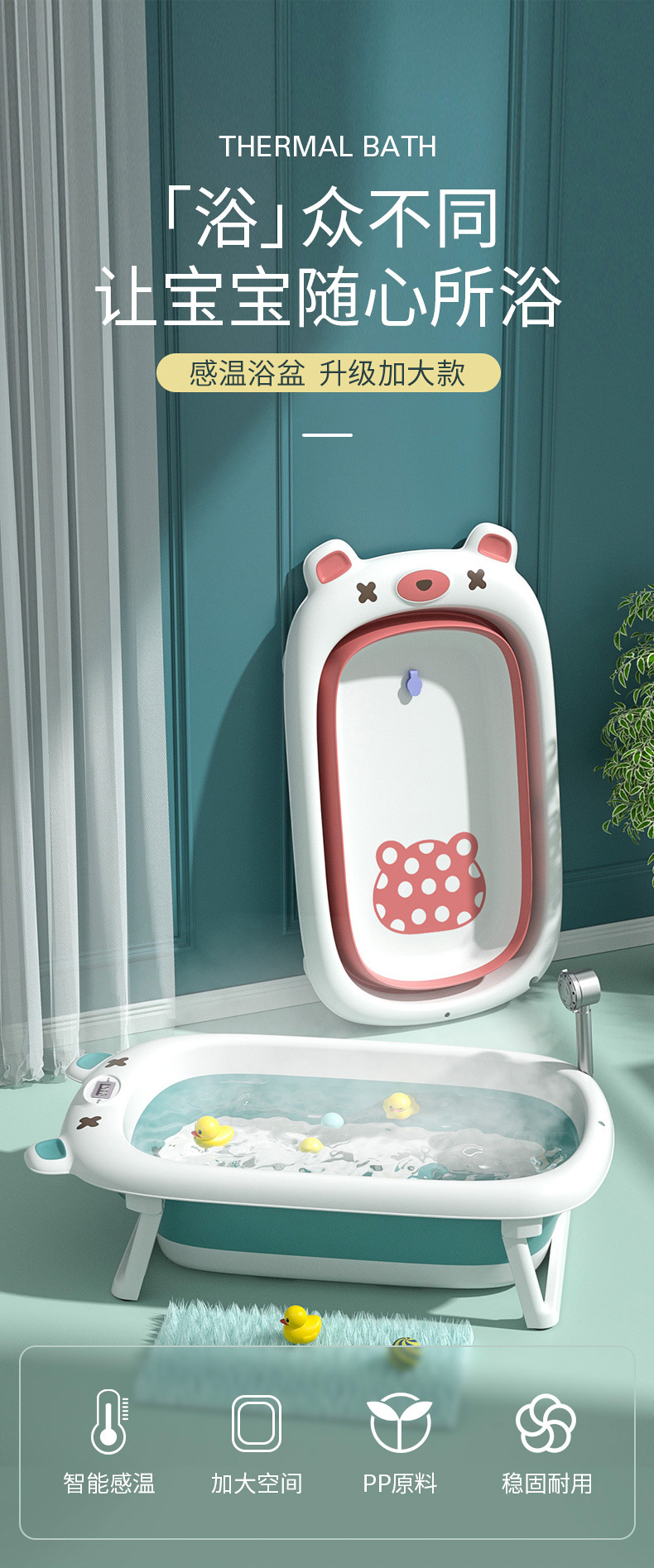 Bebé sensible a la temperatura plegable bañera de dibujos animados bebé bañera de gran tamaño niños baño cubo transfronterizo Amazon