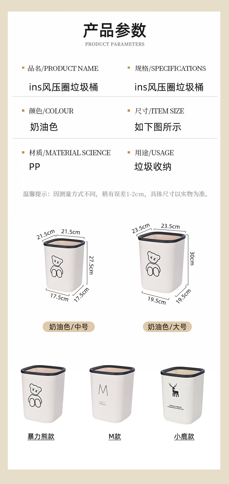 | Color | Oso violento grande [bote de basura cuadrado],Oso violento mediano [bote de basura cuadrado],Estilo de ciervo grande [bote de basura cuadrado],Ciervo estilo medio [cubo de basura cuadrada],M grande [cubo de basura cuadrado],M medio [cubo de basura cuadrado] |