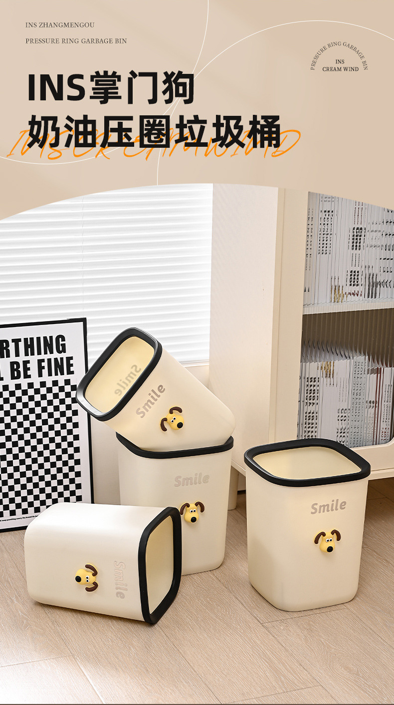 2023 nuevo cubo de almacenamiento de color blanco lechoso creativo para sala de estar y dormitorio moderno simple hogar gran tamaño pequeño anillo de presión bote de basura