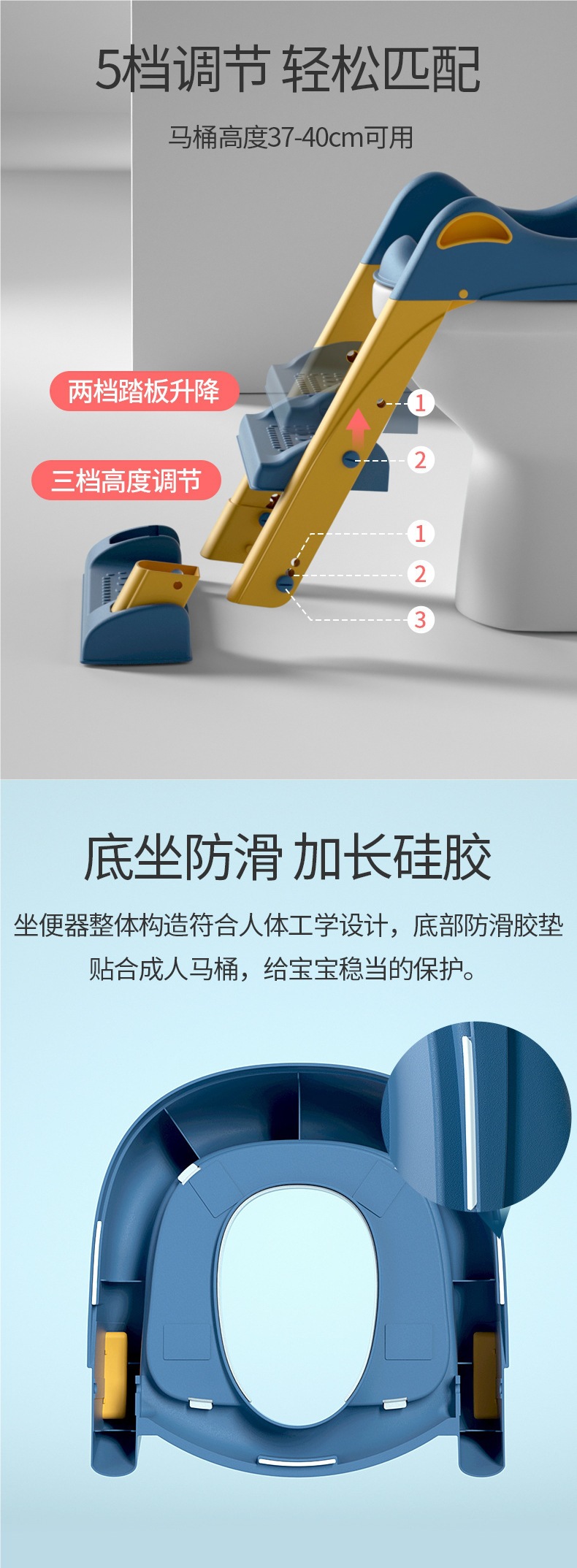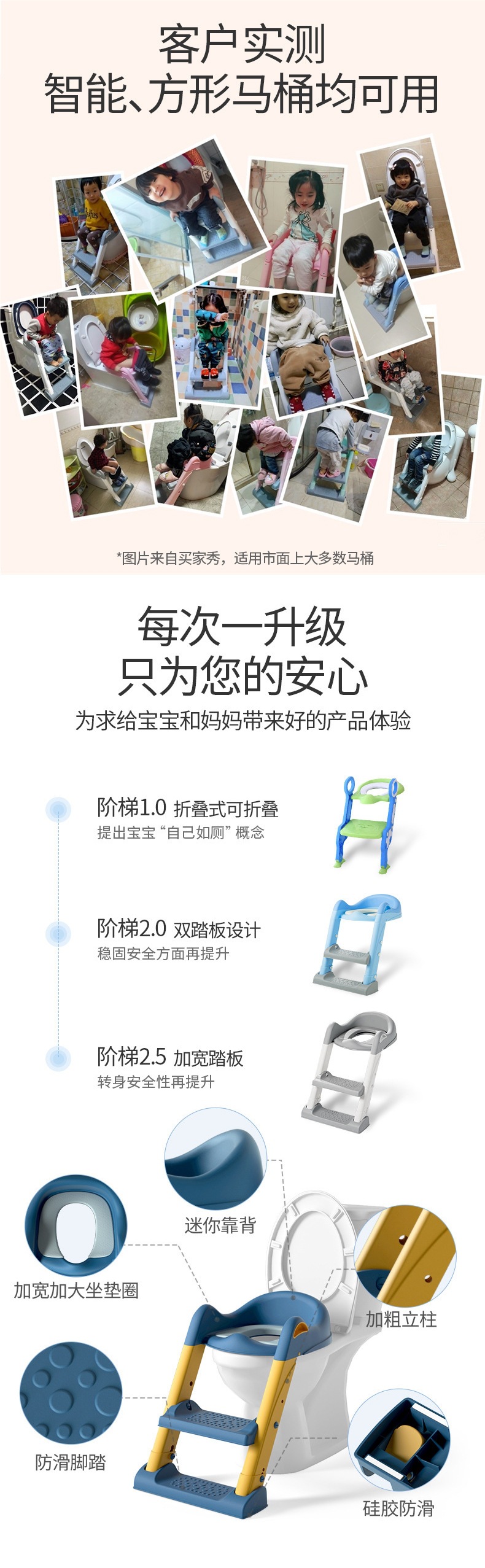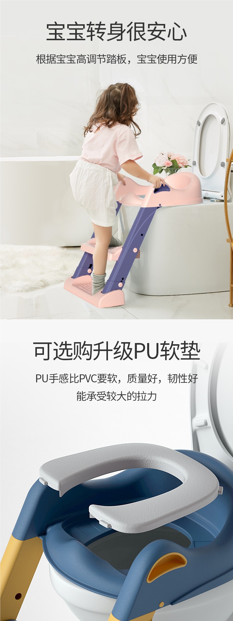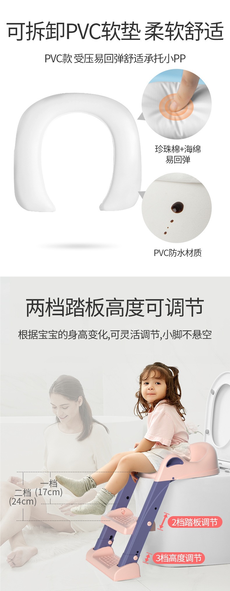 Inodoro para niños, tipo escalera, cojín de anillo de escalera para bebés para hombres y mujeres