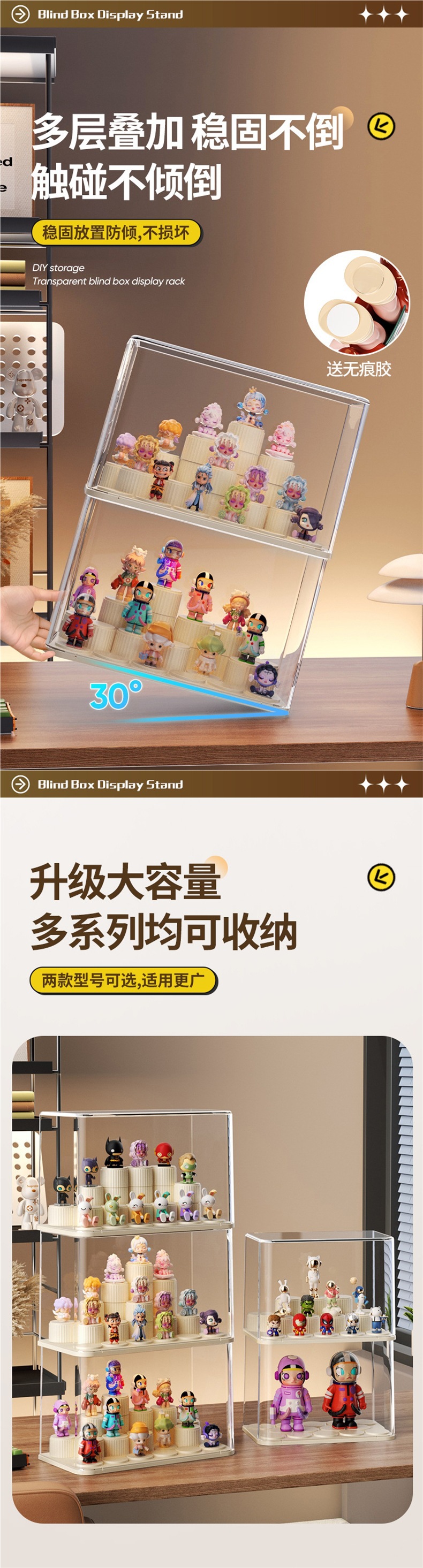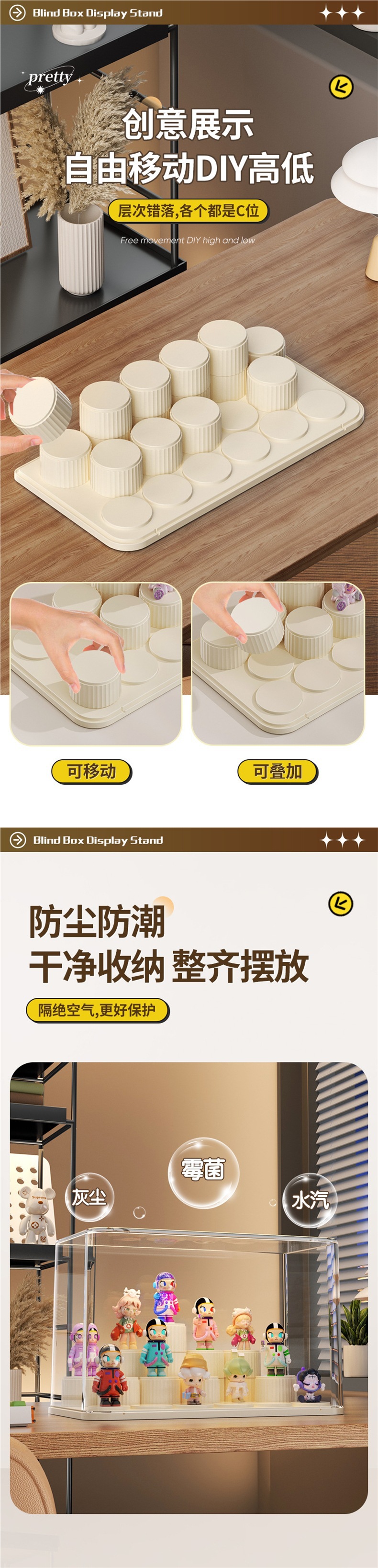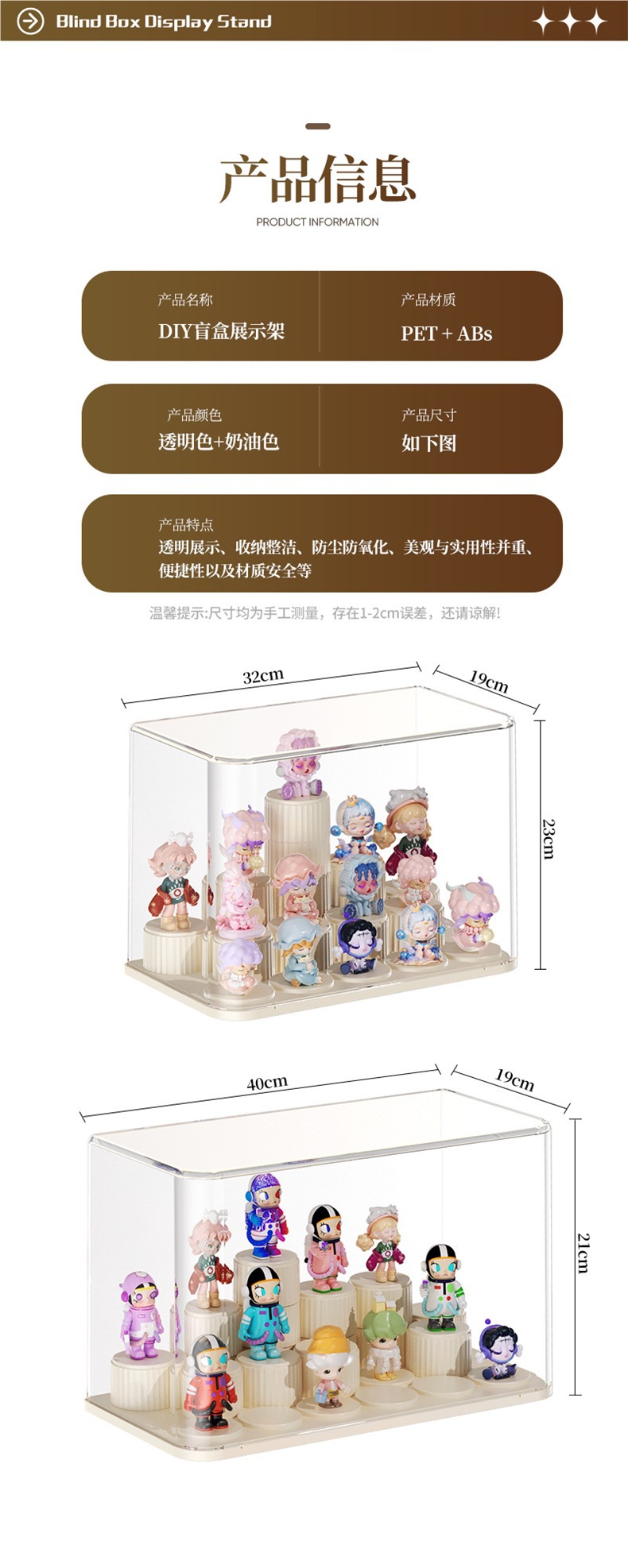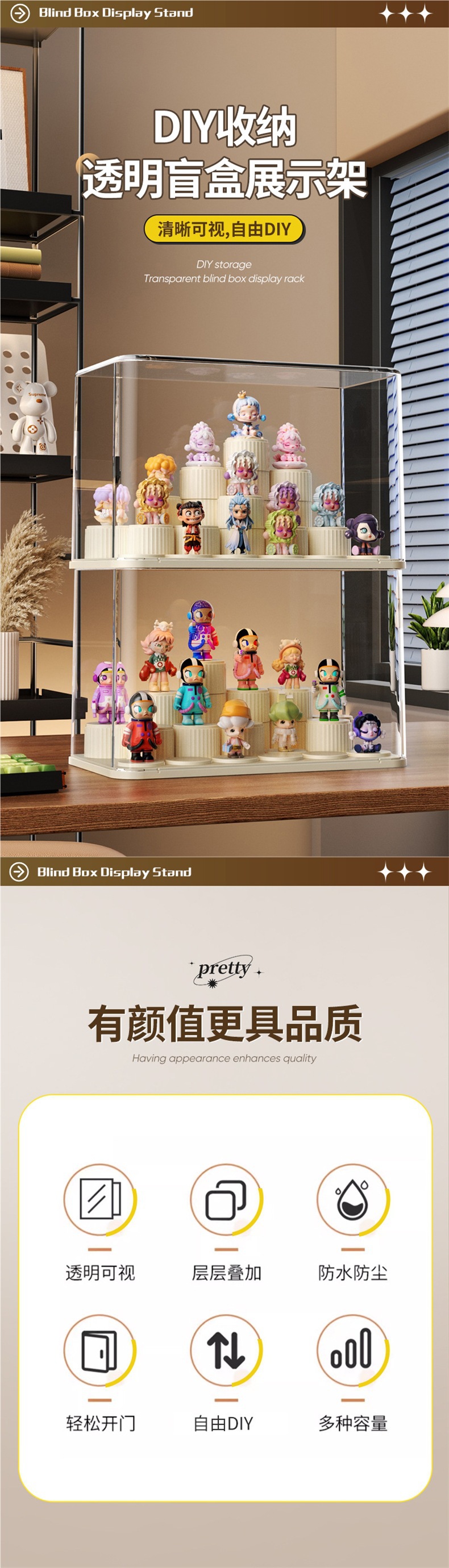 Nueva caja de almacenamiento de acabado de escritorio de estilo crema Bubble Mart caja de mano transparente a prueba de polvo Cosméticos y almacenamiento de joyas