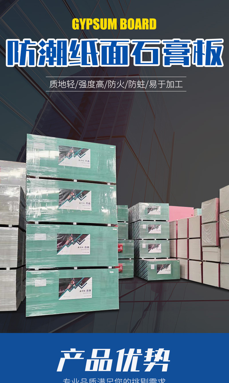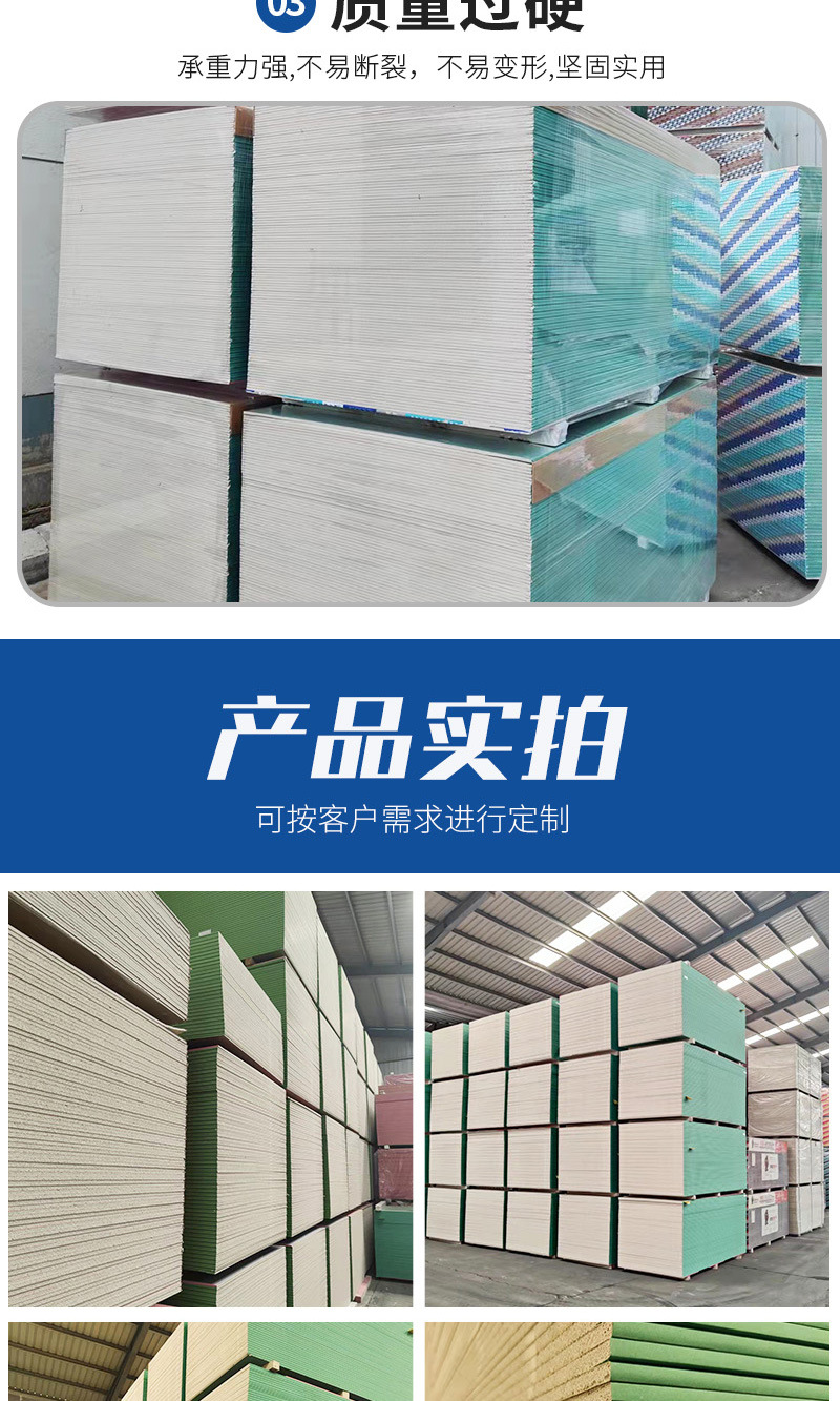 Tablero de yeso a prueba de humedad Tablero de yeso de papel absorbente de sonido para interiores a prueba de humedad Tablero de yeso