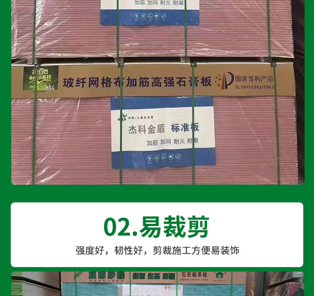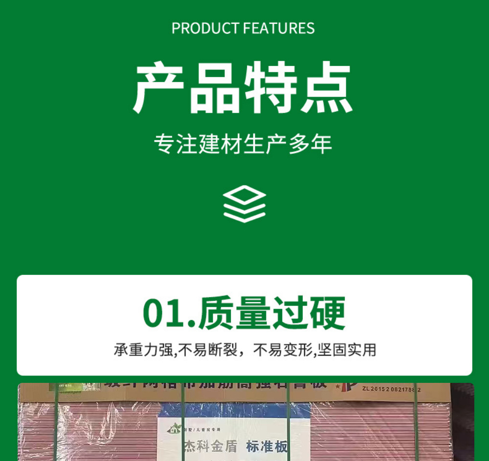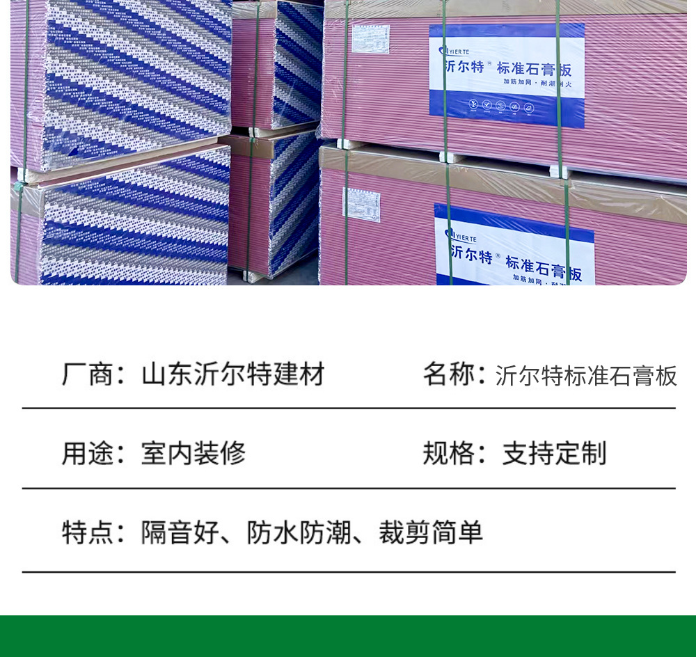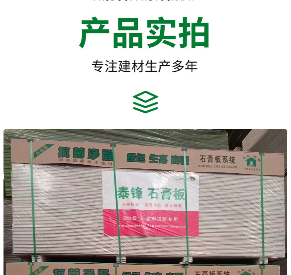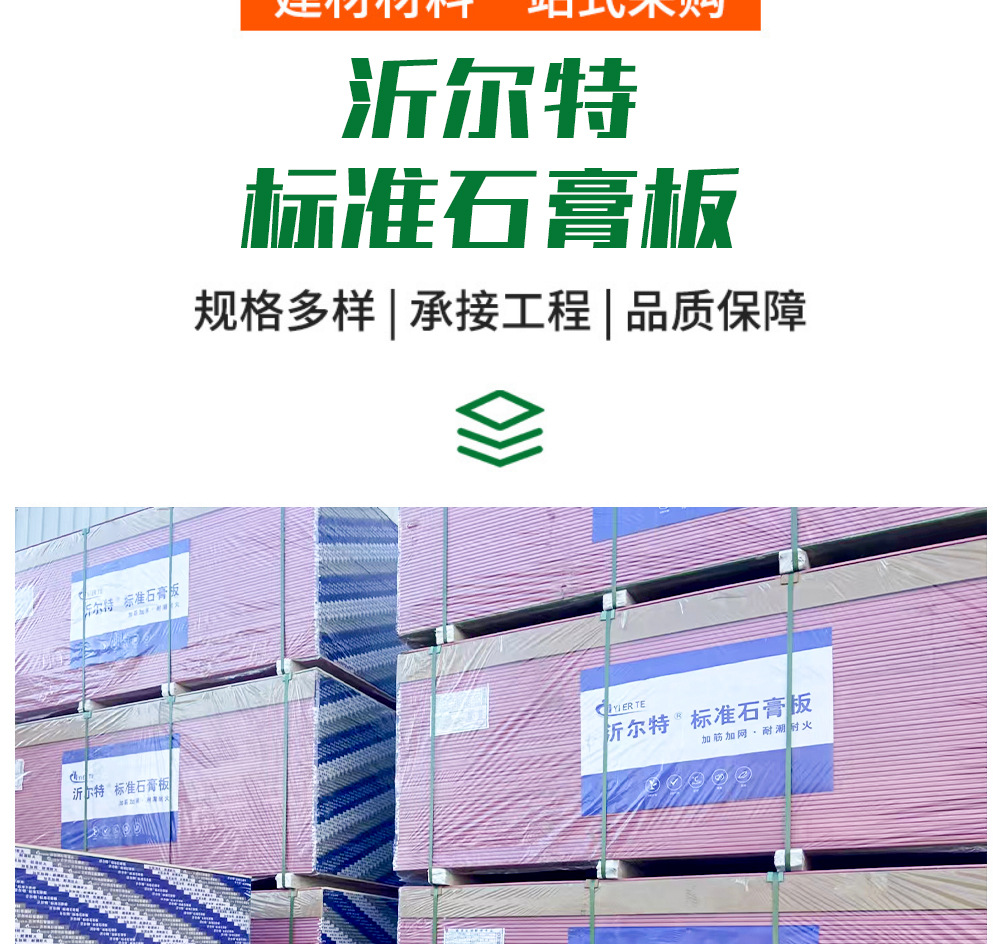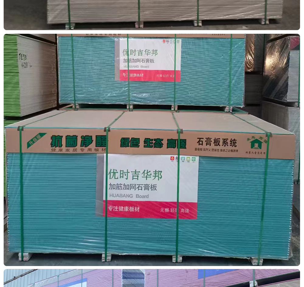 Tablero de yeso a prueba de humedad, pared divisoria, techo, decoración de techo, placa retardante de llama, quilla de acero ligero, placa de yeso resistente al agua